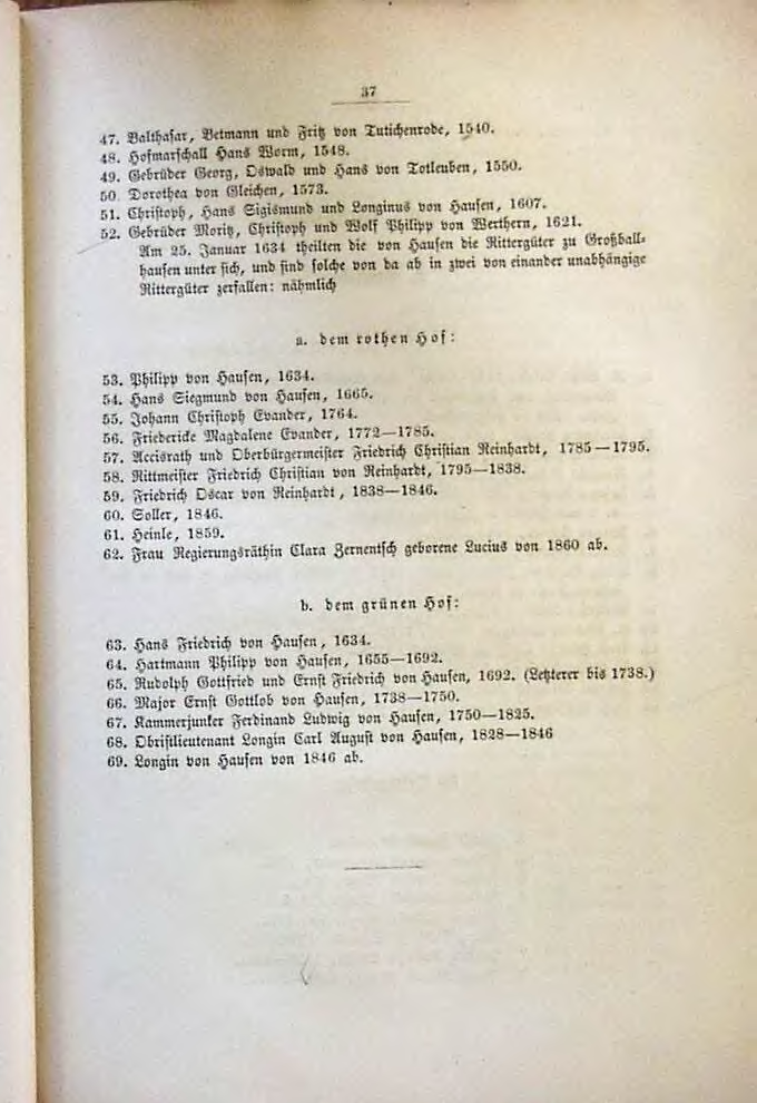Am 25. Januar 1634 theilten die von Hausen die Rittergüter zu Großballhausen unter sich, und sind solche von da ab in zwei von einander unabhängige Rittergüter zerfallen: nähmlich