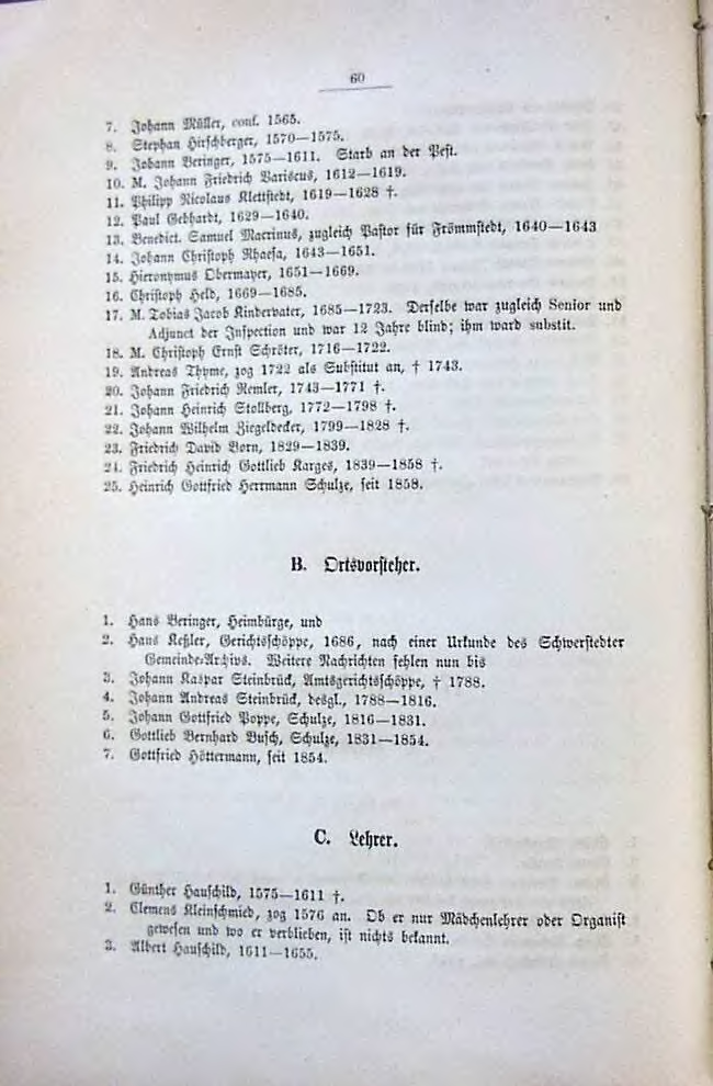 - Hans Ketzler, Gerichtsschöppe, 1686, nach einer Urkunde des Schwerstedter Gemeinde-Archivs. Weitere Nachrichten fehlen nun bis.