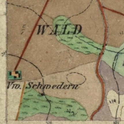 Schwedern auf der Schroetterkarte (1802) Maßstab 1:160 000 © Staatsbibliothek zu Berlin – Preußischer Kulturbesitz