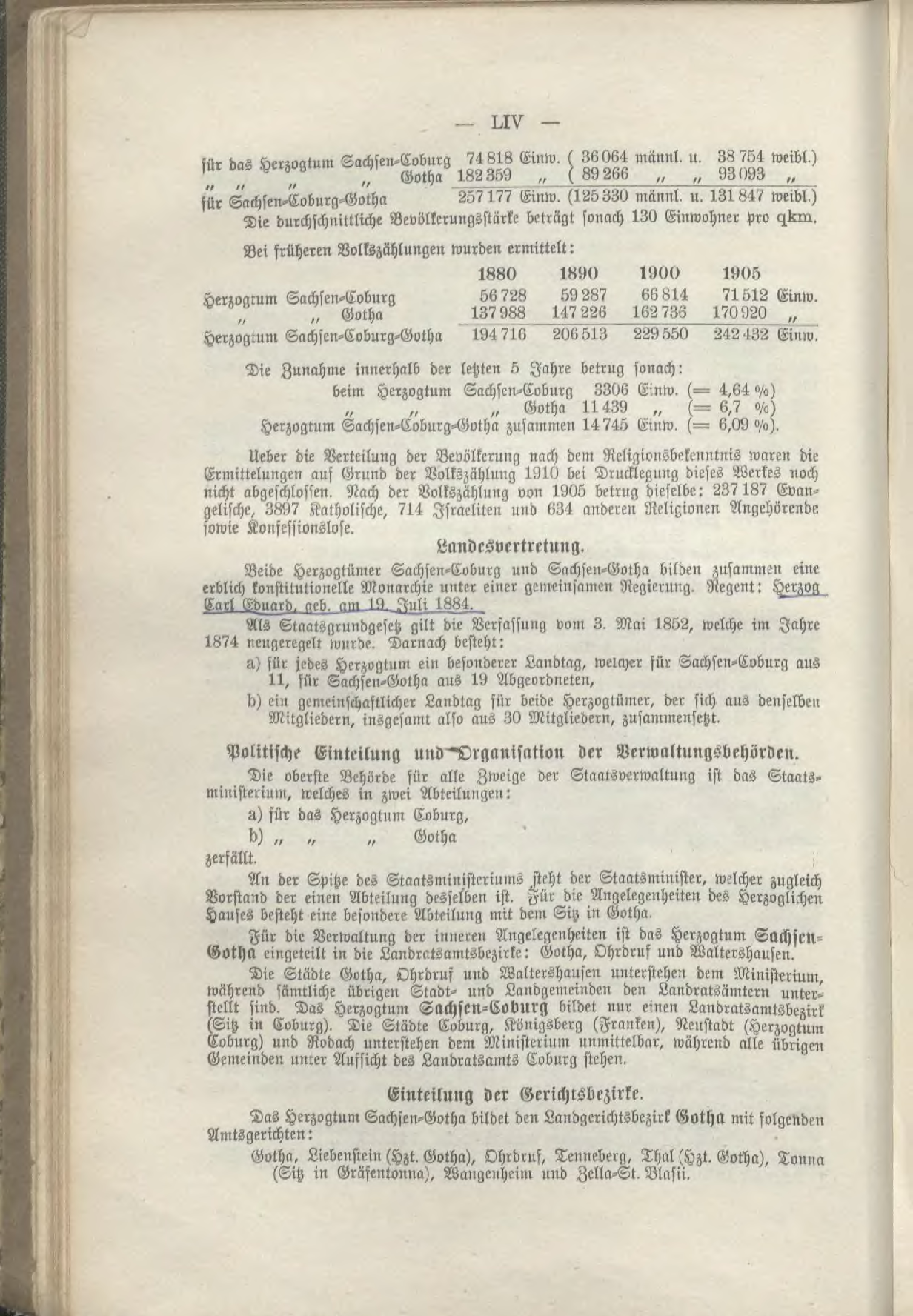 | Herzogtum | Sachsen- | Coburg-Gotha | 194.716 | 206.513 | 229.550 | 242.432 | Einw. |