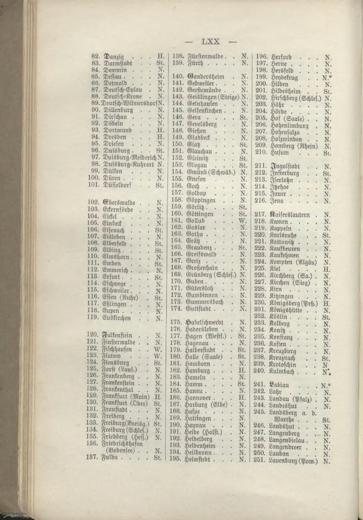82. Danzig H. 138. Fürstenwalde N. 196. Herford N.