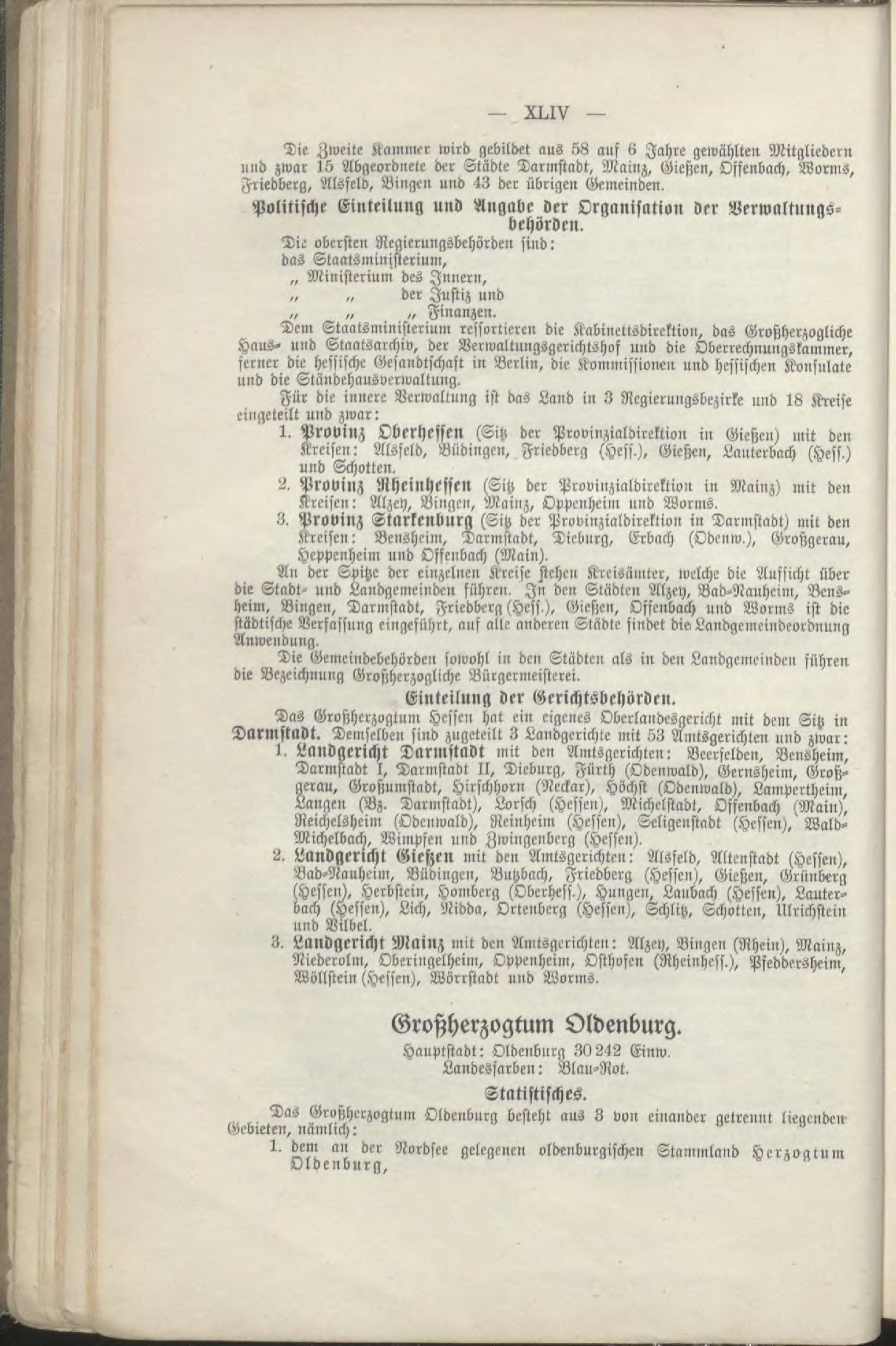Das Großherzogtum Hessen hat ein eigenes Oberlandesgericht mit dem Sitz in Darmstadt. Demselben sind zugeteilt 3 Landgerichte mit 53 Amtsgerichten und zwar: