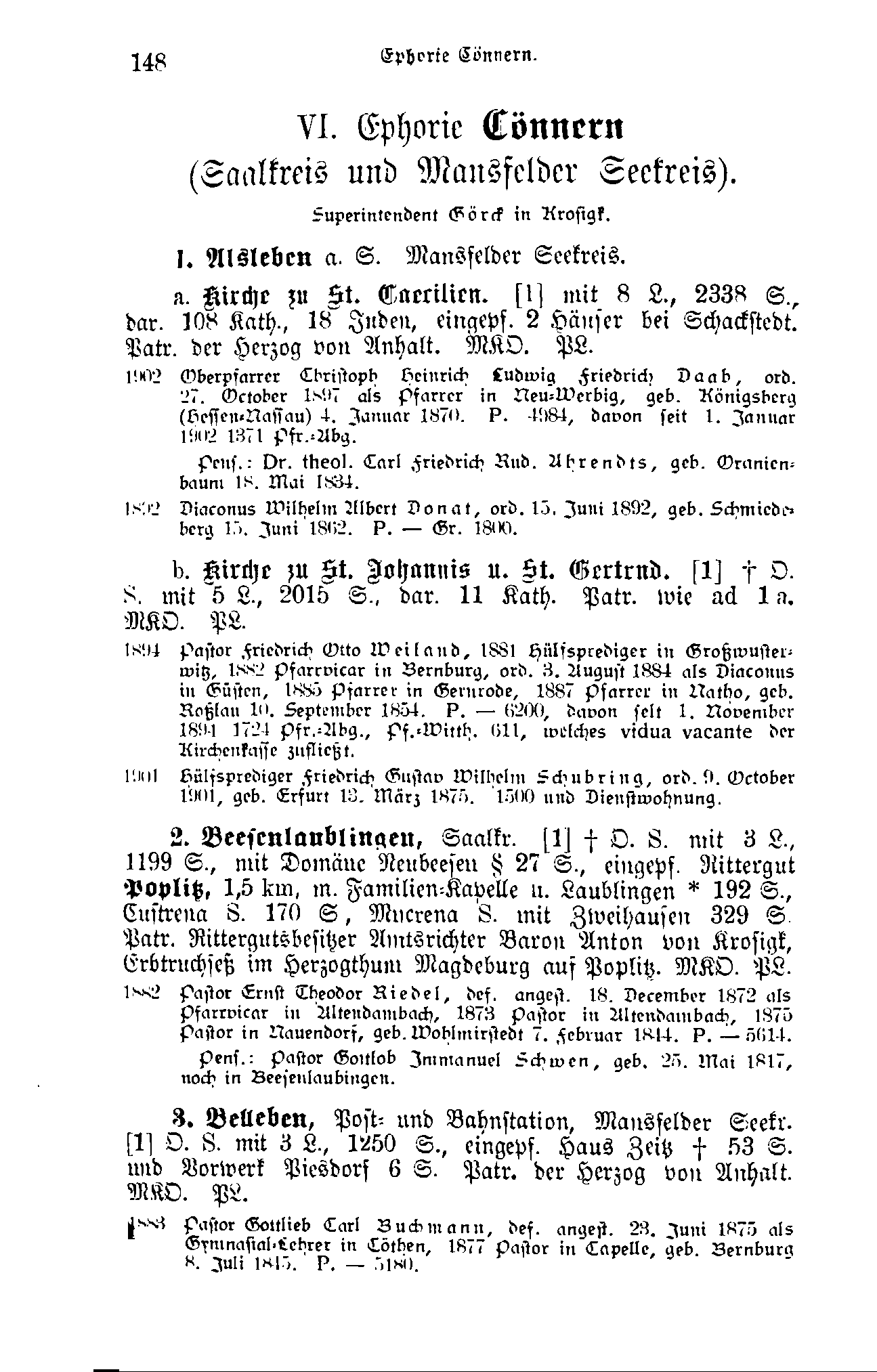 VI. Ephorie Cönnern (Saalkreis und Mansfelder Seekreis).