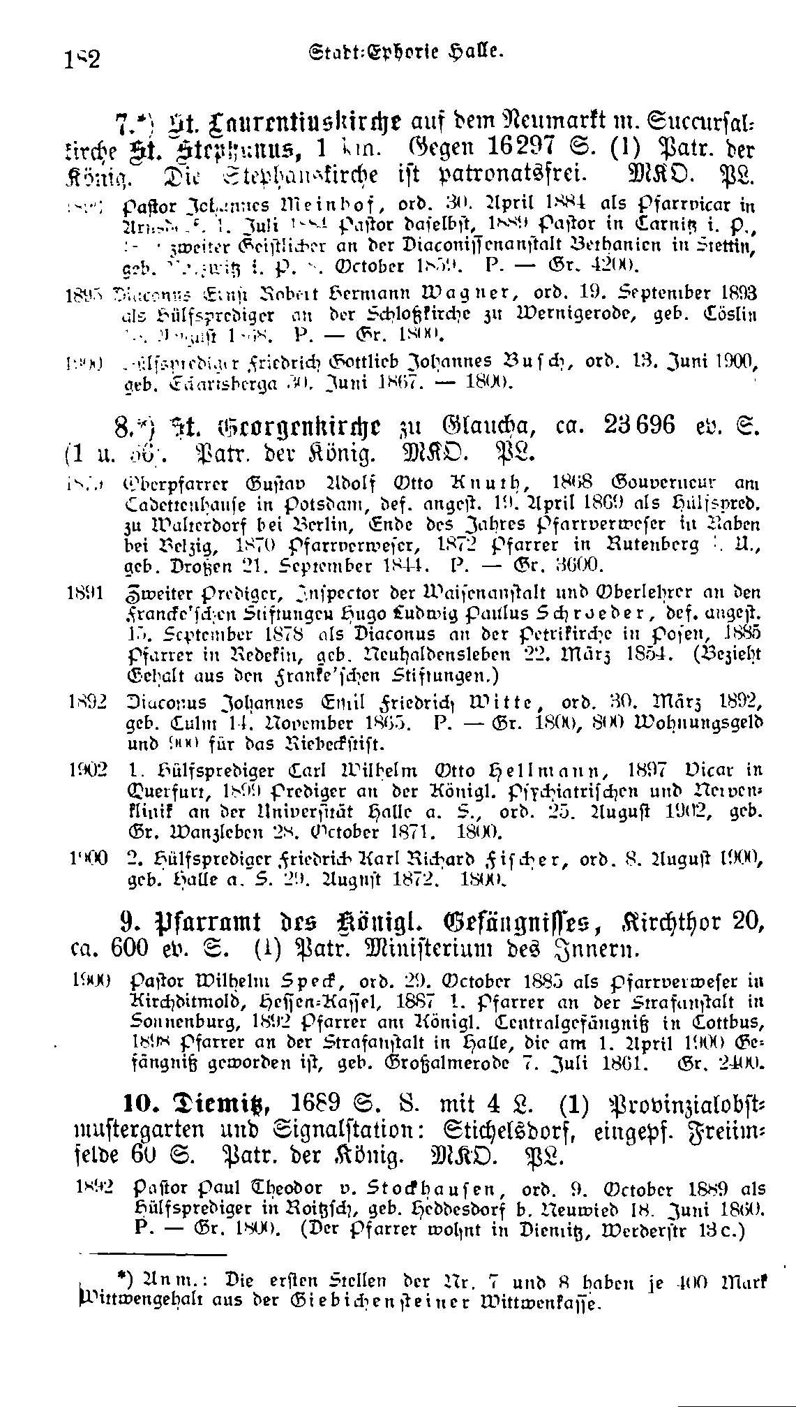 *) Anmerkung: Die ersten Stellen der Nr. 7 und 8 haben je 400 Mark Wittwengehalt aus der Giebichensteiner Wittwenkasse.