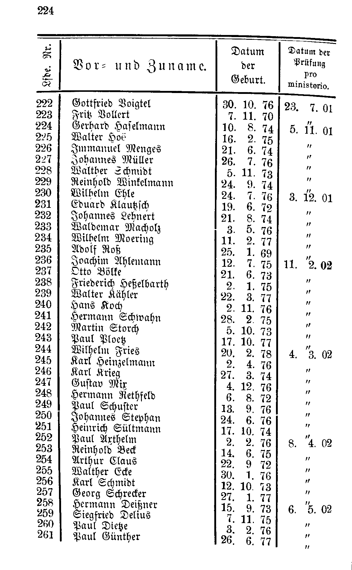 | 224 | Gerbard Haselmann | 10.08.1874 | 05.11.1901 |