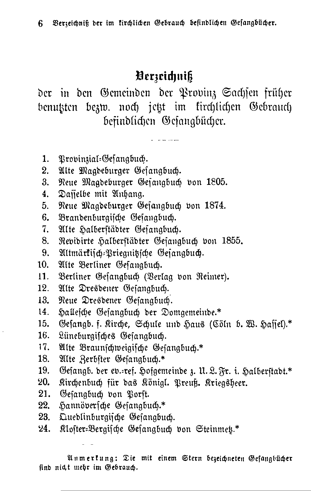 Anmerkung: Die mit einem Stern bezeichneten Gesangbücher sind nicht mehr im Gebrauch.