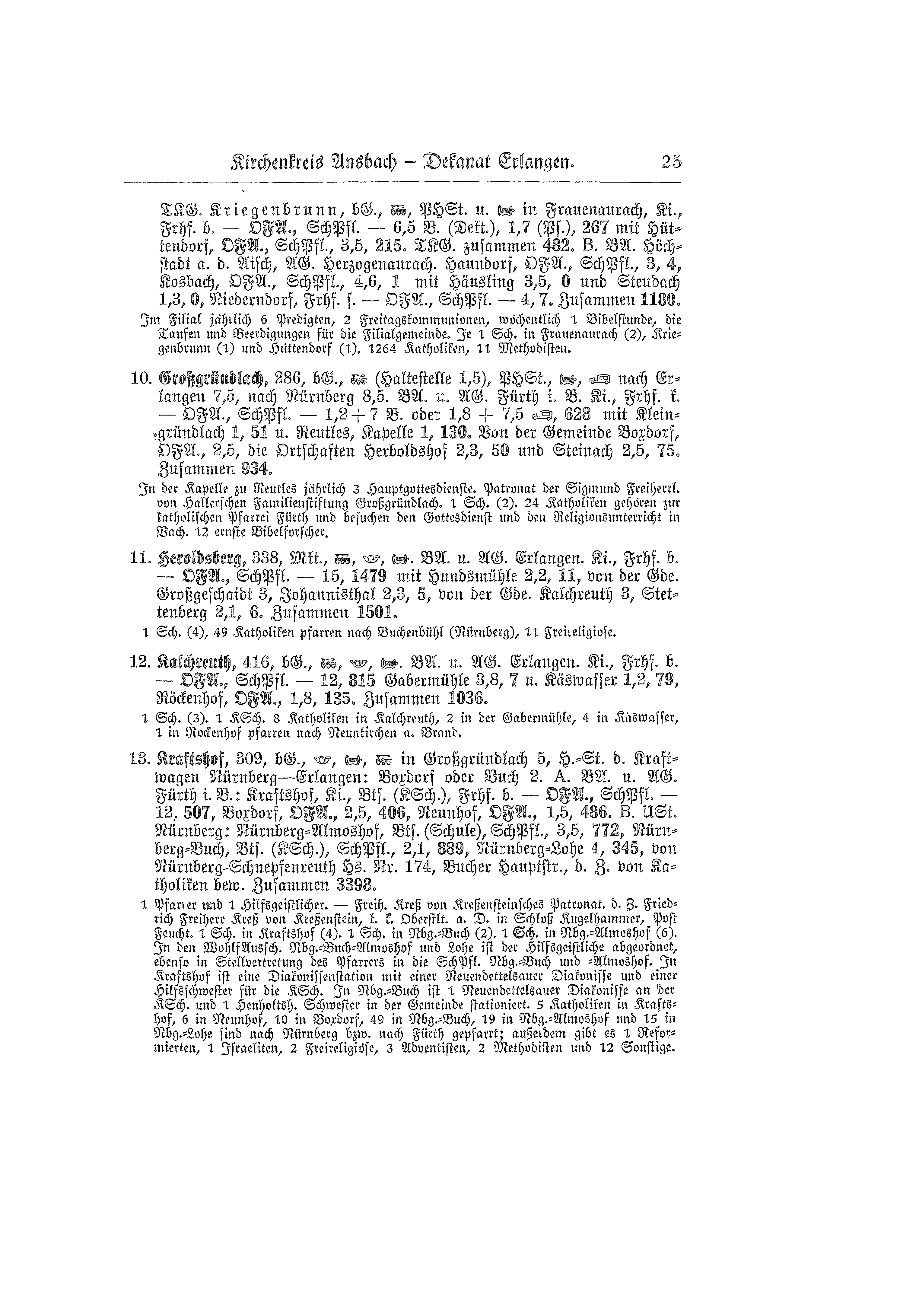 323 m, bürgerliche Gemeinde, Bahn, Post und Telefon. A. Bezirksamt und Amtsgericht Erlangen. Forth, Kirche, Friedhof, Leichenhalle bürgerlich - Ortsfürsorgeausschuß (Pfarrer Vorsitz), Schulpflegschaft - 20 Bahnkilometer, 588 Seelen. B. Bezirksamt und Amtsgericht Lauf Herpersdorf 3,6 km, 3 Seelen mit Mausgesees 1,6 km, 5 Seelen. Zusammen 596 Seelen.