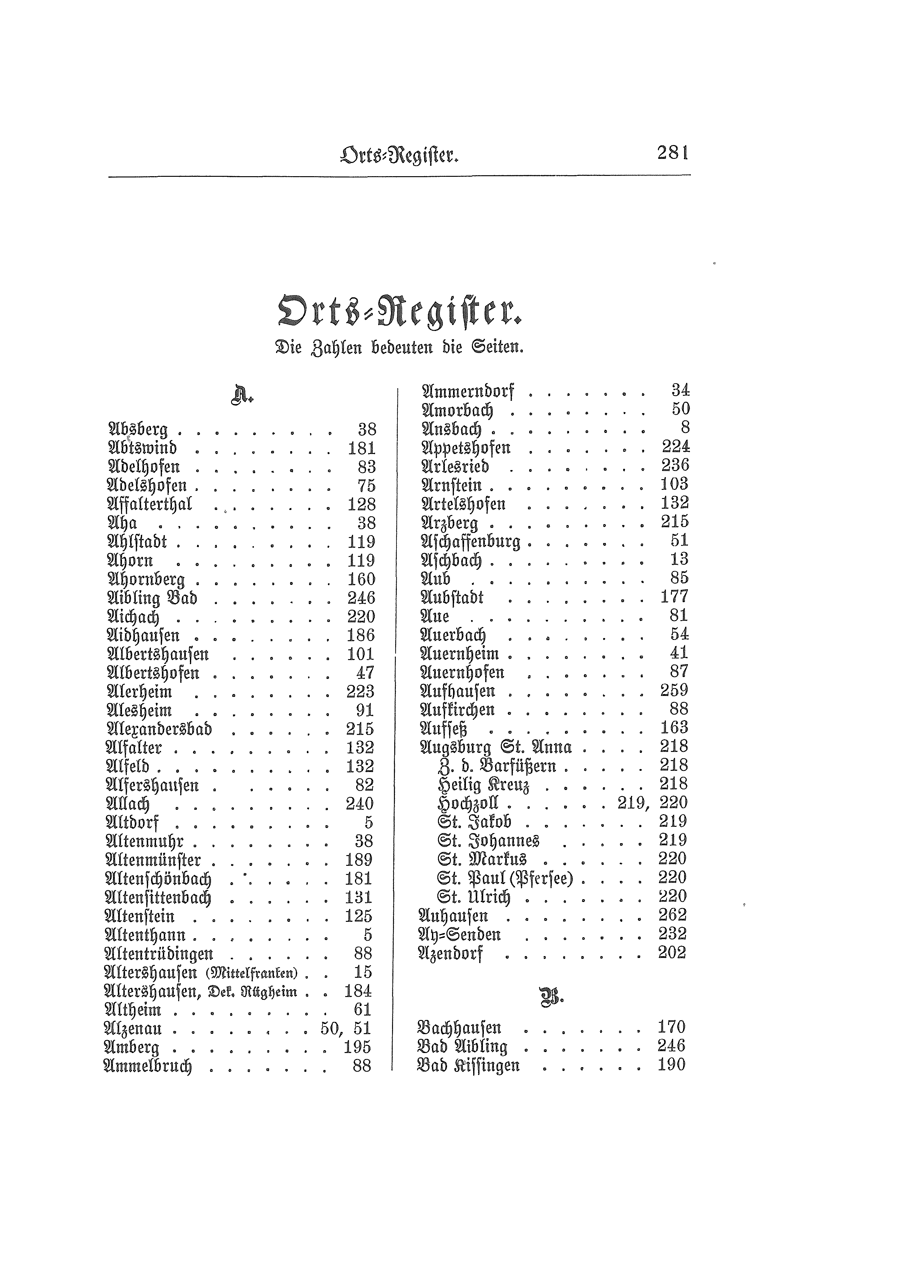 | Ortsverzeichnis Abkürzungen | Erläuterungen Pfarrorte beginnend mit: | |