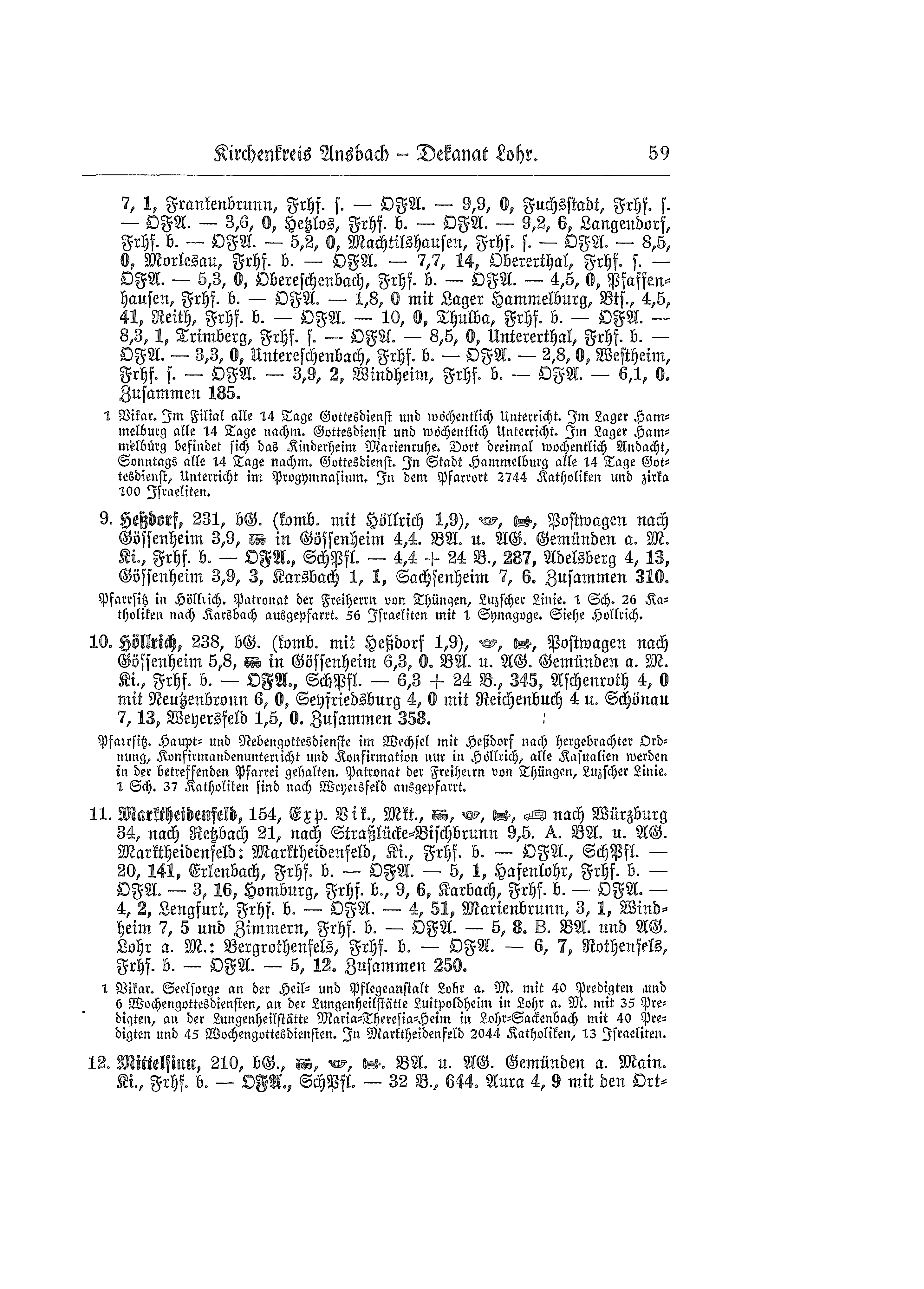 184 m, Exponiertes Vikariat, Stadt, Post, Bus nach Karlstadt 28 km, Telefon. A. Bezirksamt und Amtsgericht Hammelburg: Hammelburg, Betsaal (Pfarrhaus), Schule, Friedhof bürgerlich - Ortsfürsorgeausschuß, Schulpflegschaft - 42 Bahnkilometer, 113 Seelen und die Gemeinden Diebach, Friedhof bürgerlich - Ortsfürsorgeausschuß - 4,1 km, 7 Seelen, Elfershausen, Friedhof bürgerlich - Ortsfürsorgeausschuß - 8,2 km, 0 Seelen, Engenthal, Friedhof bürgerlich - Ortsfürsorgeausschuß - 9,2 km, 0 Seelen, Feuertal, Friedhof simultan - Ortsfürsorgeausschuß - 7 km, 1 Seele,
