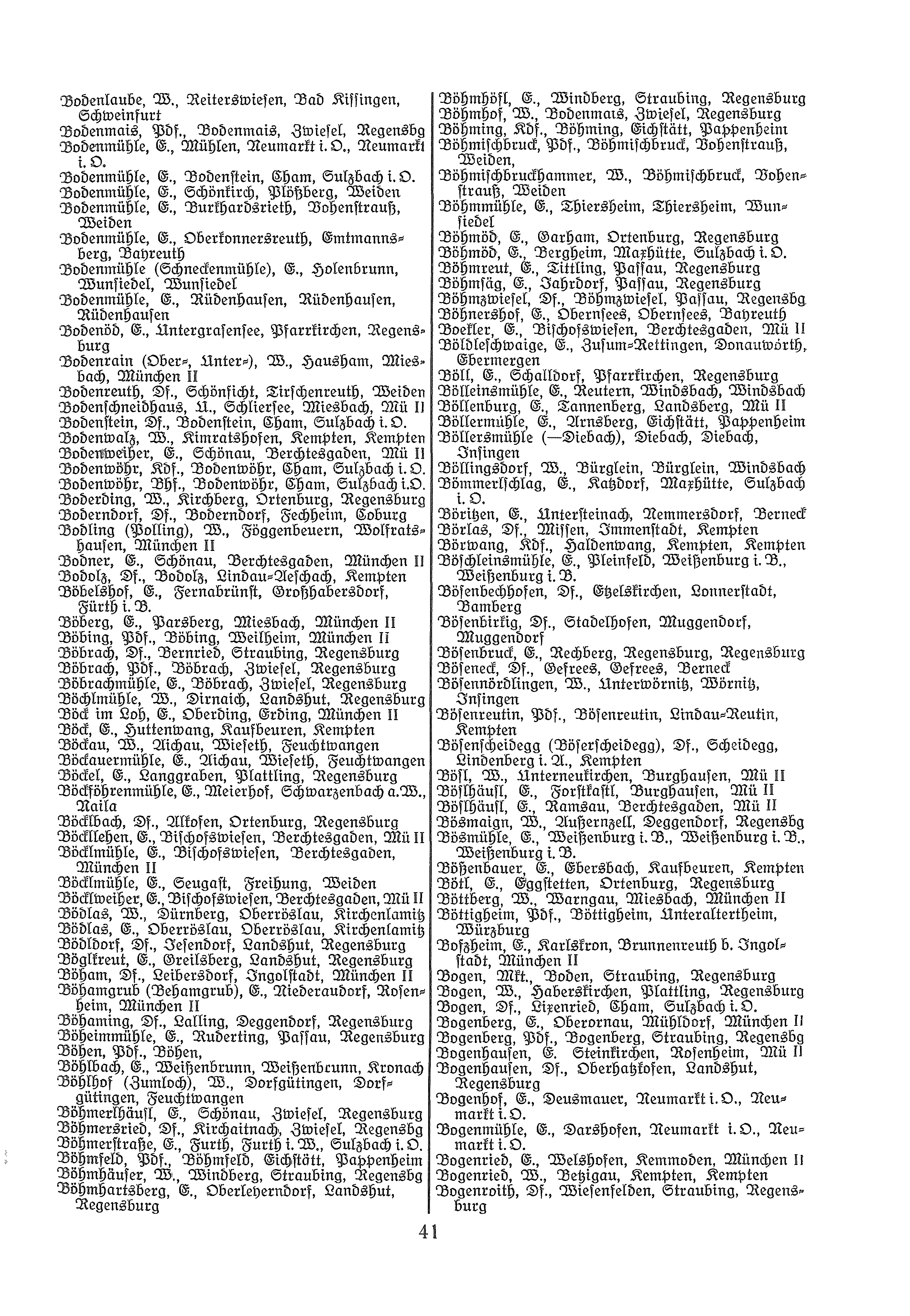 | Bösenbruck | Einöde | Rechberg | Regensburg | Regensburg |