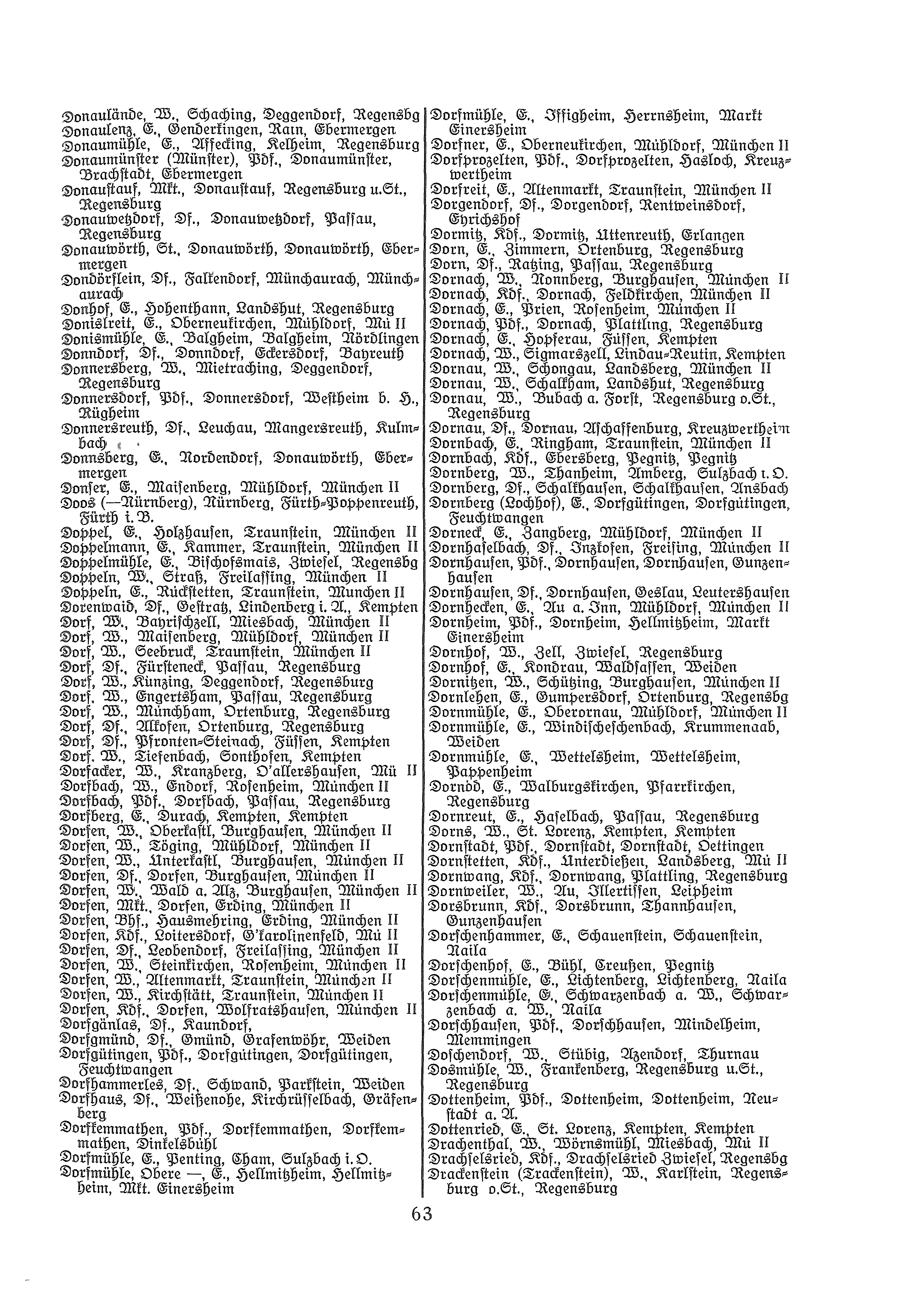 | Dosmühle | Weiler | Frankenberg | Regensburg u.St. | Regensburg |