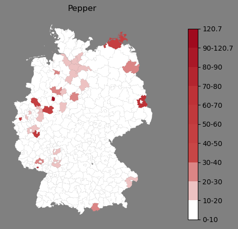 Absolute Verteilung des Namens Pepper (1890)Direkt zur Karte Absolute Verteilung des Namens "Pepper" um 1890 im damaligen Deutschen Reich Sie können die Karte innerhalb des Fensters zoomen und verschieben. |