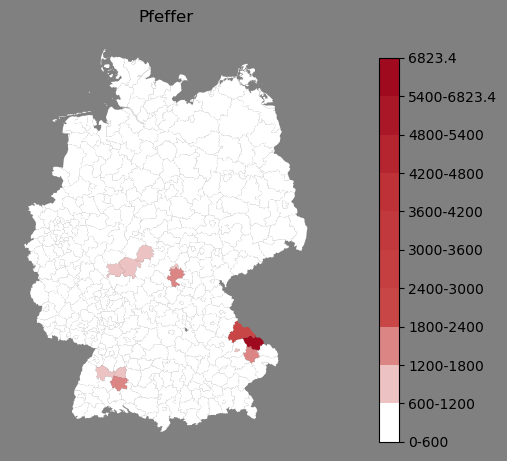 Absolute Verteilung des Namens Pfeffer (1890)Direkt zur Karte Absolute Verteilung des Namens "Pfeffer" um 1890 im damaligen Deutschen Reich Sie können die Karte innerhalb des Fensters zoomen und verschieben. |