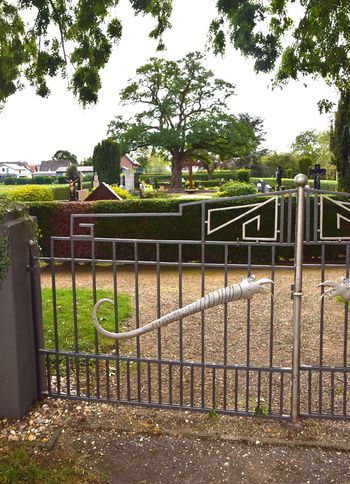 Der Friedhof liegt am nördlichen Ortsrand von Poll.