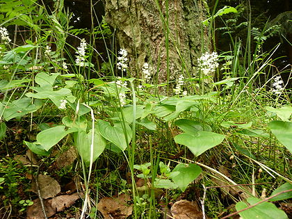- auf Bäume, bunte Blumen, Stein und Moos.