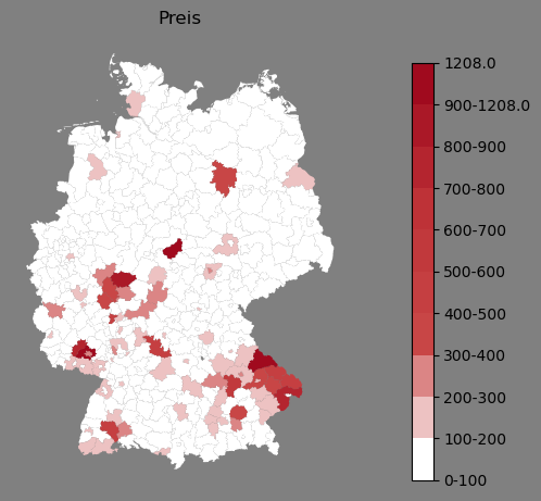 Absolute Verteilung des Namens Preis (1890)Direkt zur Karte Absolute Verteilung des Namens "Preis" um 1890 im damaligen Deutschen Reich Sie können die Karte innerhalb des Fensters zoomen und verschieben. |