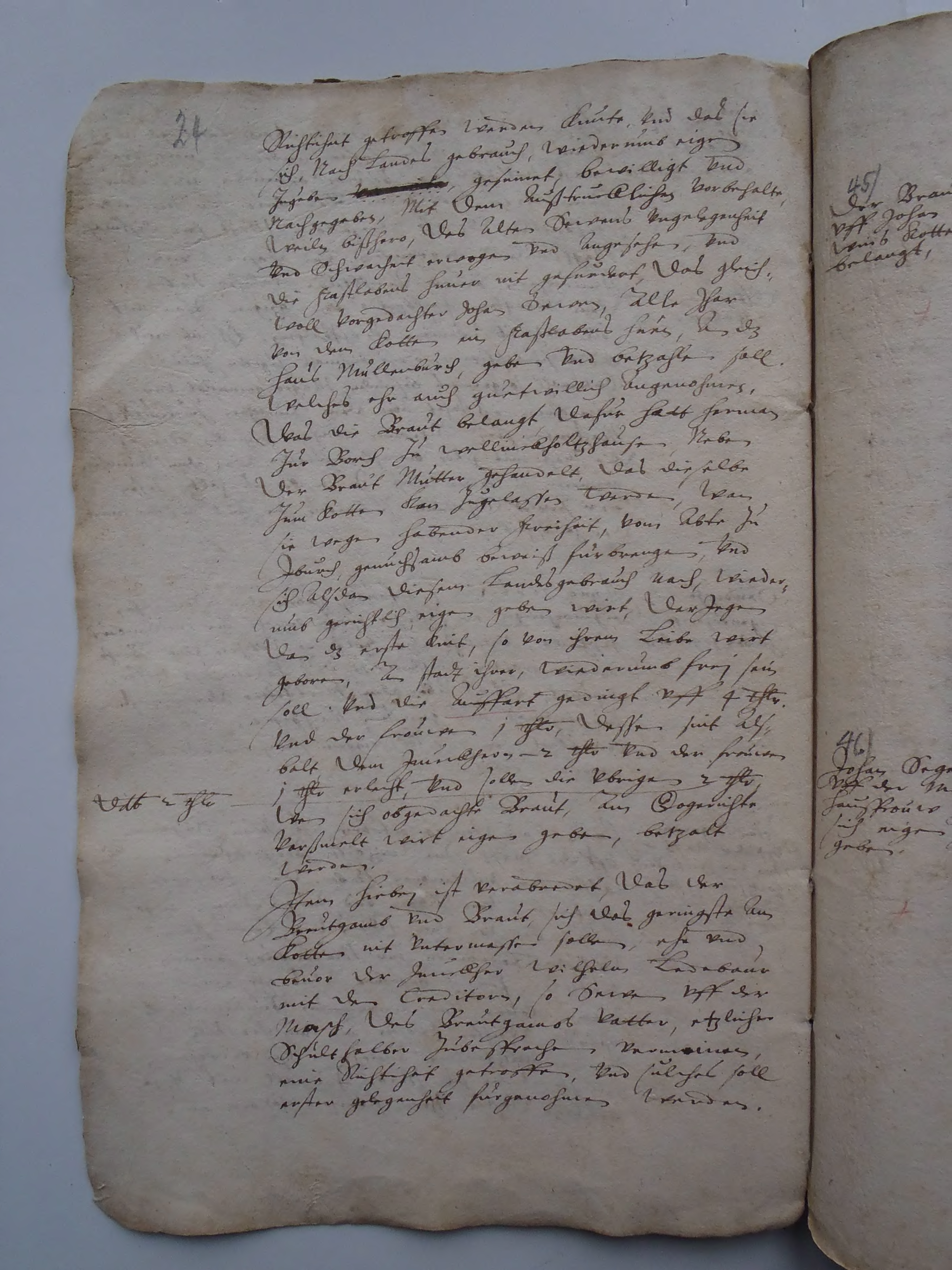 Item hiebei ist verabredet, das der Breutgamb und Braut, sich das geringste am Kotten nit untermassen sollen, ehe und bevor der Junckher Wilhelm Ledebaur mit den Conditorn, so Sewen uff der Masch, des Breutgambs Vatter, etzlichen Schult halber zubesprechen vermeinen, eine Richticheit getroffen, und sülches soll erster Gelegenheit fürgenohmen werden.