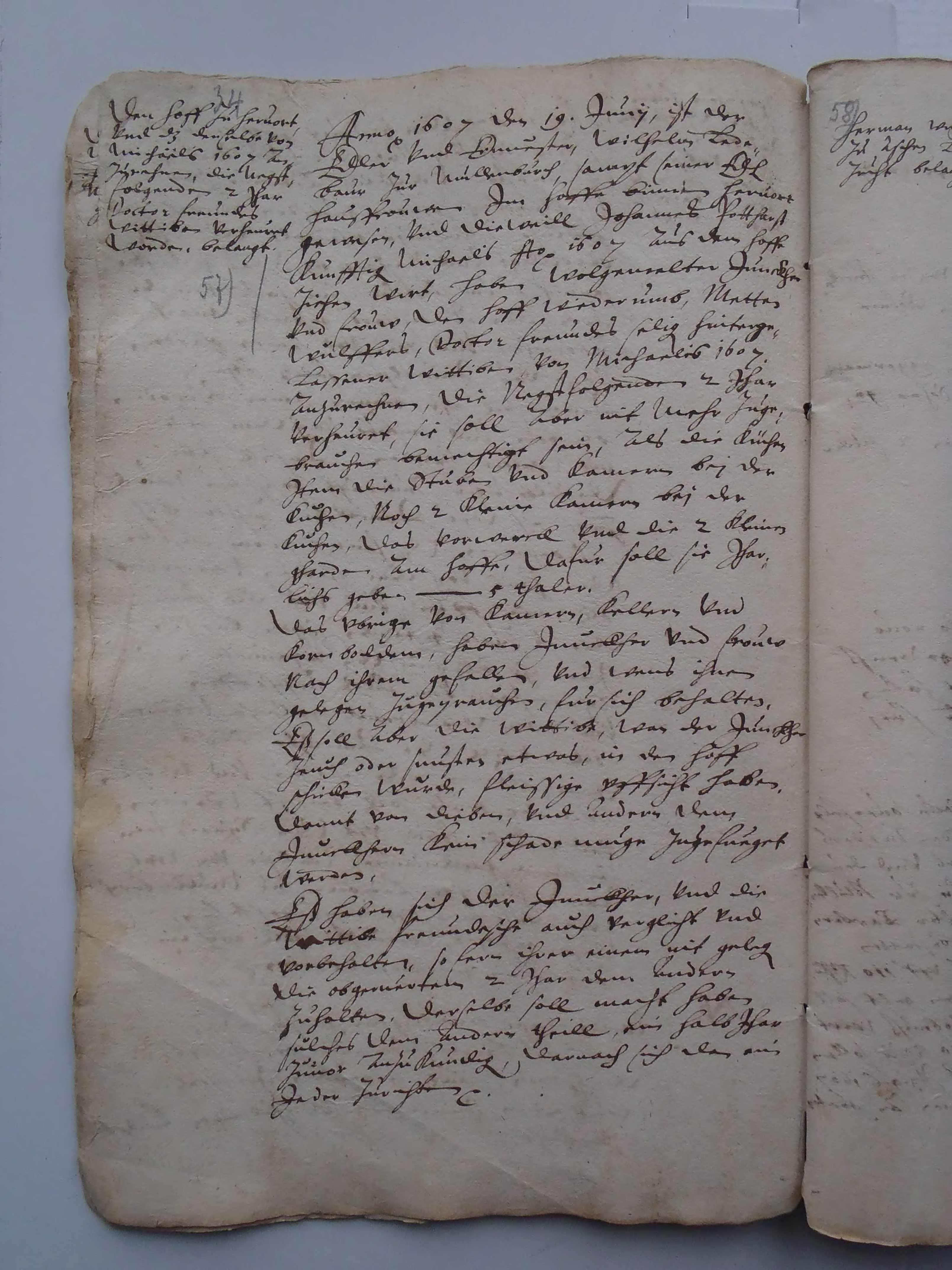 Anno 1607 den 19. Juny, ist der Edler und Ernvesten, Wilhelm Ledebaur zur Müllenburch, sampt seiner Edl. Hausfrouwen im Hoffe binnen Hervort gewesen, und dieweill Johannes Pottharst künfftigen Michaelis anno 1607 aus dem Hoffe ziehen wirt, haben wolgemelter Junckher und Frouw, den Hoff wiederumb, Metten Wülffers, Doctor Freundes seliger hintergelassener Wittiben, von Michaelis 1607 zuzurechnen, die negstfolgenden 2 Jhar verheuret, sie soll aber nit mehr zugebrauchen bemechtigt sein, als die Küchen item die Stuben und Kamern bei der Küchen, noch 2 kleine Kamern bei der Küchen, das Vorwerck und die 2 kleinen Gharden am Hoffe, dafür soll sie jharlichs geben 5 Thaler. Das ubrige von Kamern, Kellern und Kornboddem, haben Junckher und Frouw nach ihrem Gefallen, und wens ihnen gelegen zugeprauchen, für sich behalten. Eß soll aber die Wittibe, wan der Junckher jeuch oder suesten etwas, in den Hoff schicken würde, fleissige Uffsicht haben, damit von Dieben, und andern dem Junkchern kein Schade müge zugefueget werden. Eß haben sich der Junckher, und die Wittibe Freundesche auch verglicht und vorbehalten, so fern ihrer einem nit gelegen die obgeruertem 2 Jhar dem andern zuhalten. Derselbe soll Macht haben sülches dem andern Theill, ein halb Jhar zuvor anzukündigen, darnach sich dan ein jeder zurichten.