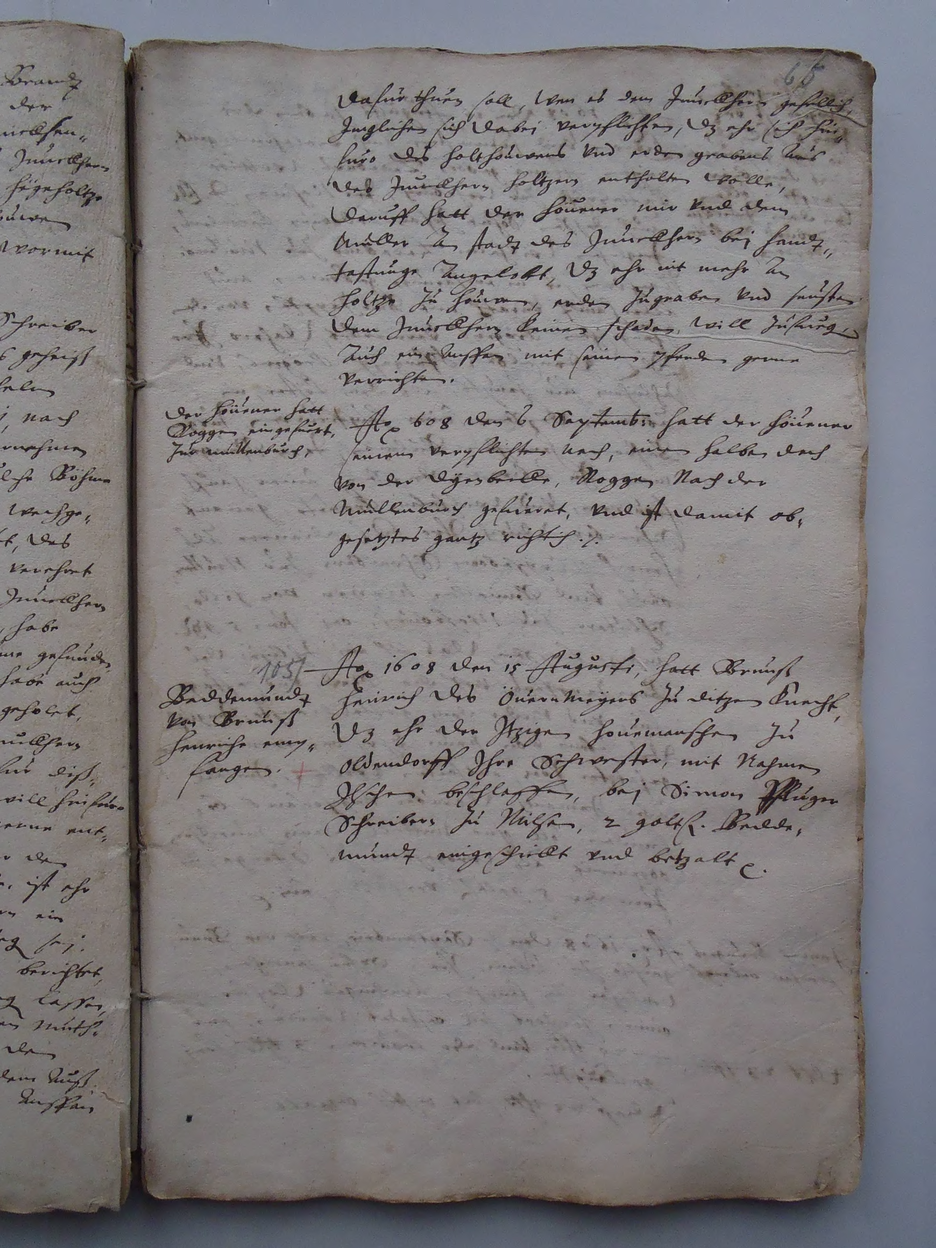 Anno 1608 den 15 Augusti, hatt Brunß Henrich des Öuvenmeyers zu Ditzens Knecht, das ehr der itzigen Hovemanschen zu Oldendorff ihre Schwester, mit Nahmen Ilschen beschlaffen, bei Simon Pflüger Schreiber zu Milsen, 2 Goltflorin Beddemundt eingeschickt und betzalt.