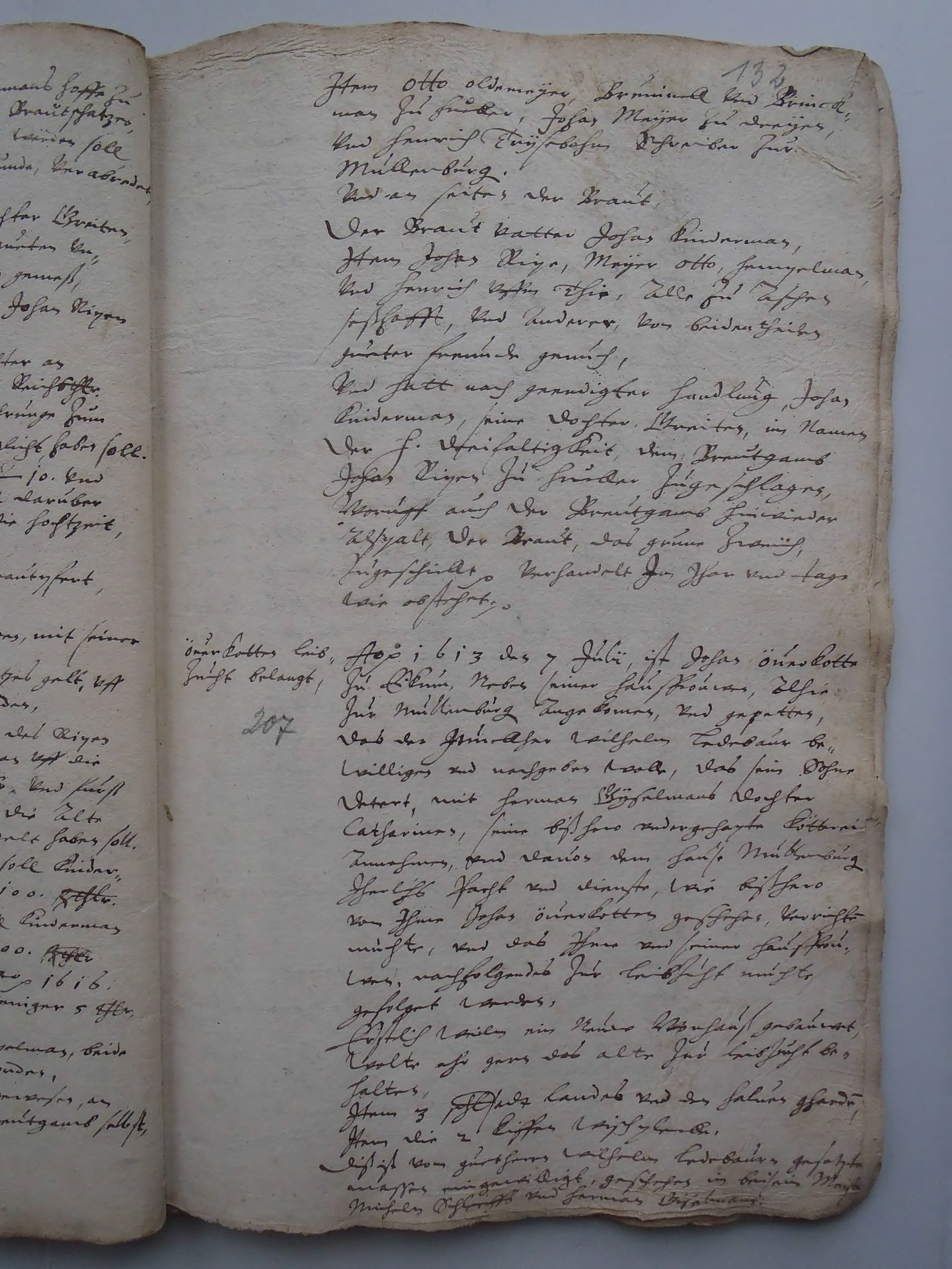 Anno p 1613 den 7 July, ist Johan Överkotte zu Eikum, neben seiner Hausfrouwen, alhie zur Mullenburg angekomen, und gepetten, das der Junckher Wilhelm Ledebaur bewilligen und nachgeben wolle, das sein Sohne Detert, mit Herman Gyselmans Dochter Catharinen, seine bißhero undergehapte Kötterei annehmen, und davon dem Hause Mullenburg jherlichs Pacht und Dienste, wie bißhero von ihme Johan Överkotten geschehen, verrichten muchte, und das ihme und seiner Hausfrouwen, nachfolgendes zur Leibzucht muchte gefolget werden.
