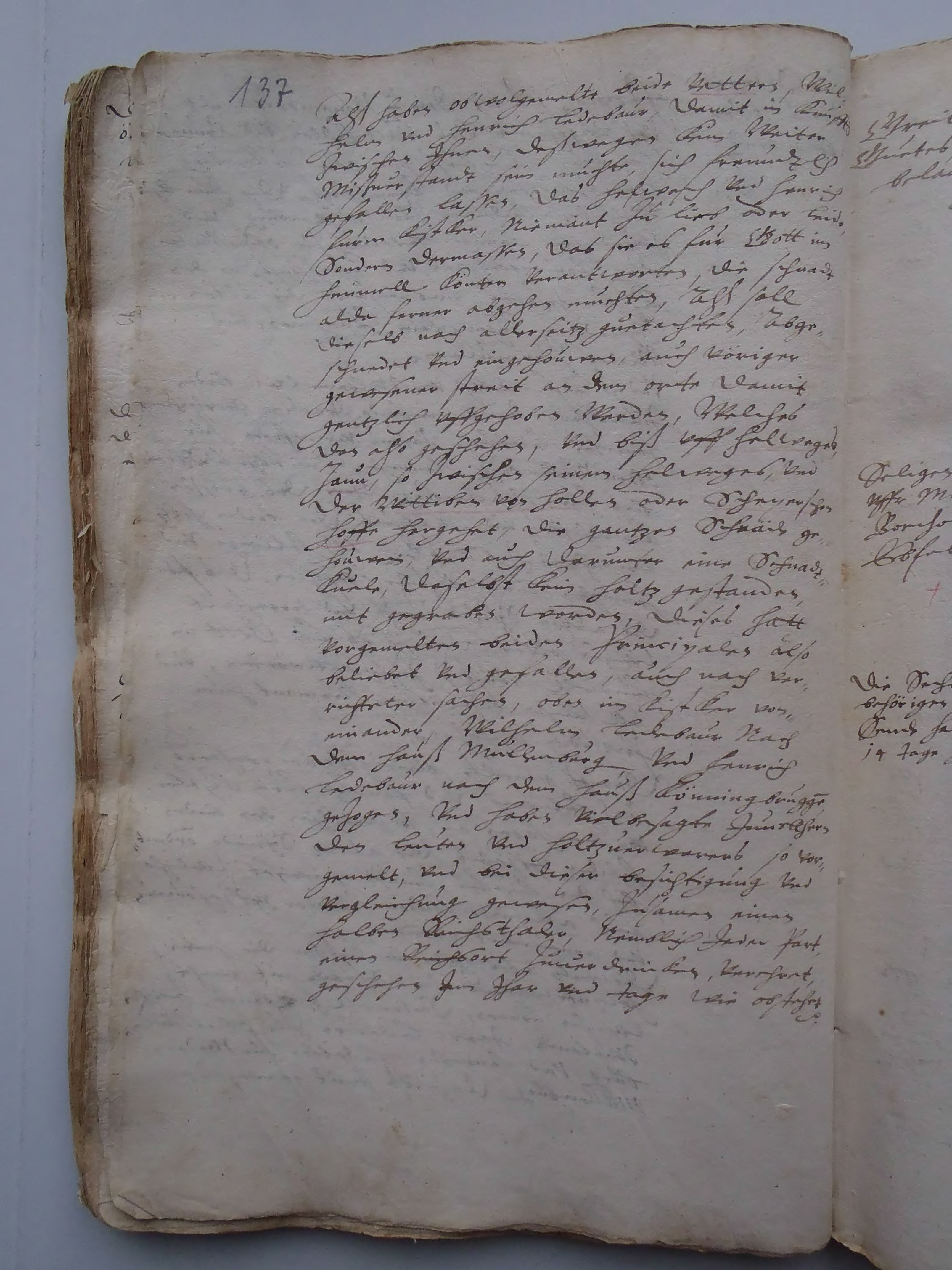 als haben obwolgemelte beide Vettern, Wilhelm und Henrich Ledebaur, damit in kunfte zwischen ihnen, deßwegen kein weiter Mißverstandt sein muchte, sich freundtlich gefallen lassen, das Helwech und Henrich furm Kistker, niemant zu Lieb oder Leid, sondern dermassen, das sie es fur Gott im Himmell könten verantworten, die Schnadt alda ferner abgehen muchten, als soll dieselb nach allerseitz Guetachten, abgeschnedet und eingehouwen, auch vöriger gewesener Streit an dem Orte damit gentzlich uffgehoben werden, welches dan also geschehen, und biß uff Helweges Zaun, so zwischen seinem Helweges, und der Wittiben von Hollen oder Scheperschen Hoffe hergehet, die gantzen Schnäde gehouwen, und auch darunter eine Schnadtkuele, daselbst kein Holtz gestanden, mit gegraben worden, dieses hatt vorgemelten beiden Principalen also beliebet und gefallen, auch nach verrichteter Sachen, oben im Kistker voneinander, Wilhelm Ledebaur nach dem Hauß Mullenburg, und Henrich Ledebaur, nach dem Hauß Könningbrugge, gezogen, und haben vielbesagte Junckhern den Leuten und Holtzverwarens so vorgemelt, und bei dieser Besichtigung und Vergleichung gewesen, zusamen einen halben Reichsthaler, nemblich jeder Part, einen Reichsort zuver drinken, verehret, geschehen im Jhar un Tage wie obstehet.