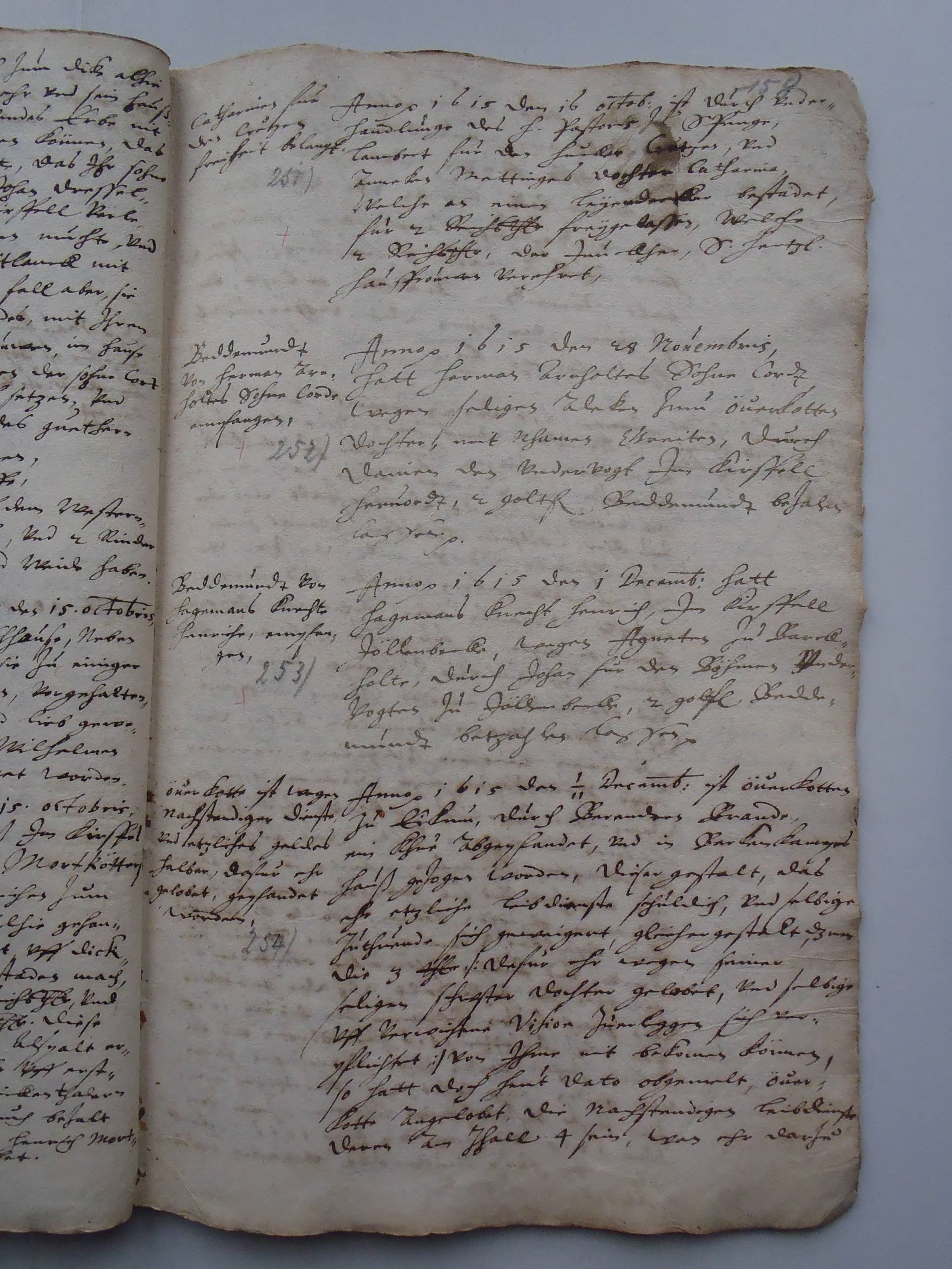 Anno p 1615 den 16 Octob. ist durch Underhandlunge des H. Pastors zu Spenge, Lambert fur den Hucker Crutzen, und Anneken Mettinges Dochter Catharina, welche an einen Leyendecker bestadet, fur 2 Reichsthaler freygelassen, welche 2 Reichsthaler, der Junckher, S. hertzl. Hausfrouwen verehret.