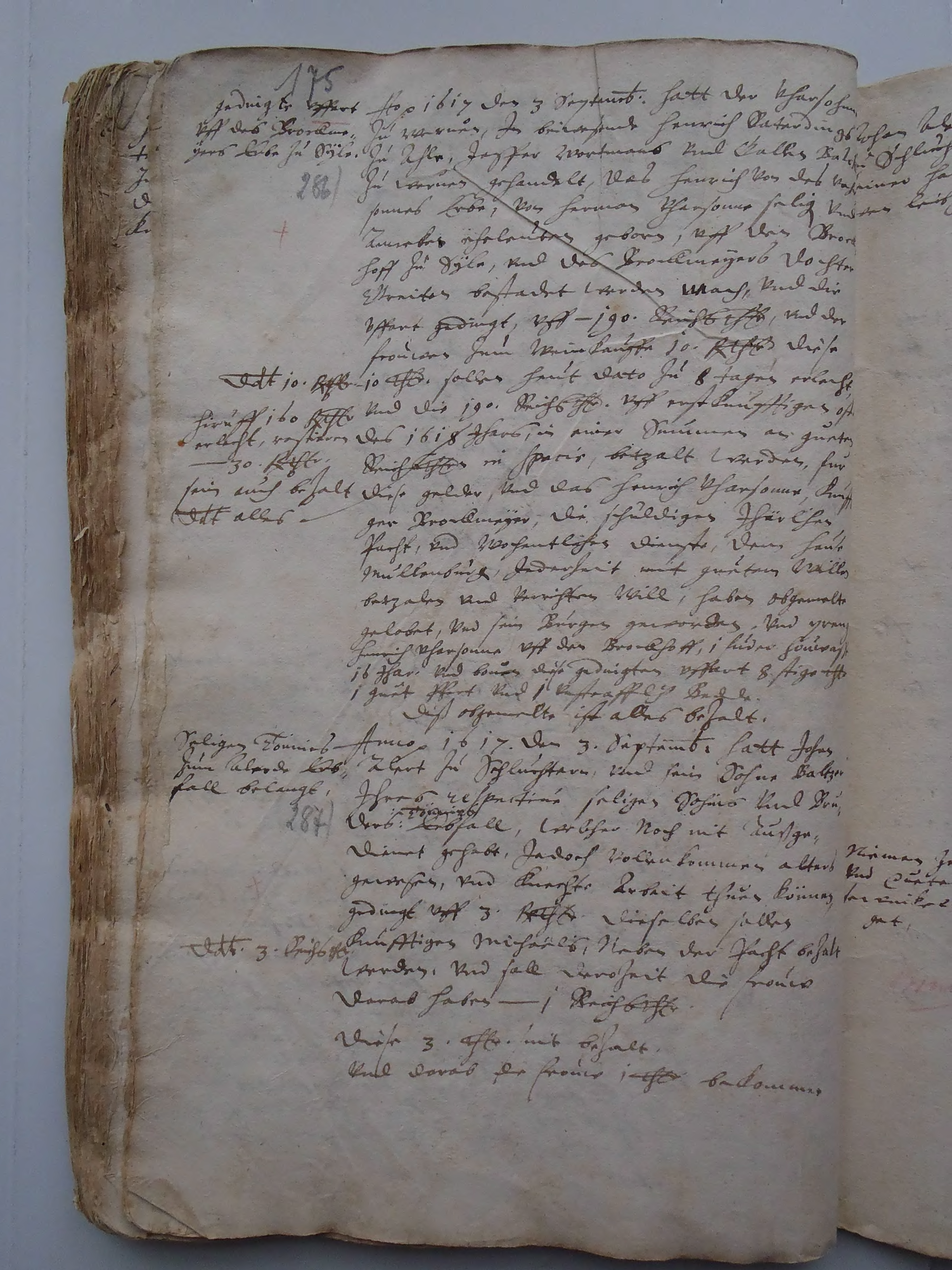 Anno p 1617 den 3 Septemb. hatt Johan Alert zu Schluchtern, und sein Sohne Baltzen ihres respectine seligen Sohnis und Bruders Tönnies Erbfall, welcher noch nit außgedienet gehabt, jedoch vollenkommen Alters gewesen, und Knechte Arbeit thuen können, gedingt uff 3 Reichsthaler. Dieselben sollen kunfftigen Michaelis, neben der Pacht bezalt werden, und soll derozeit die Frouw darab haben 1 Reichsthaler.