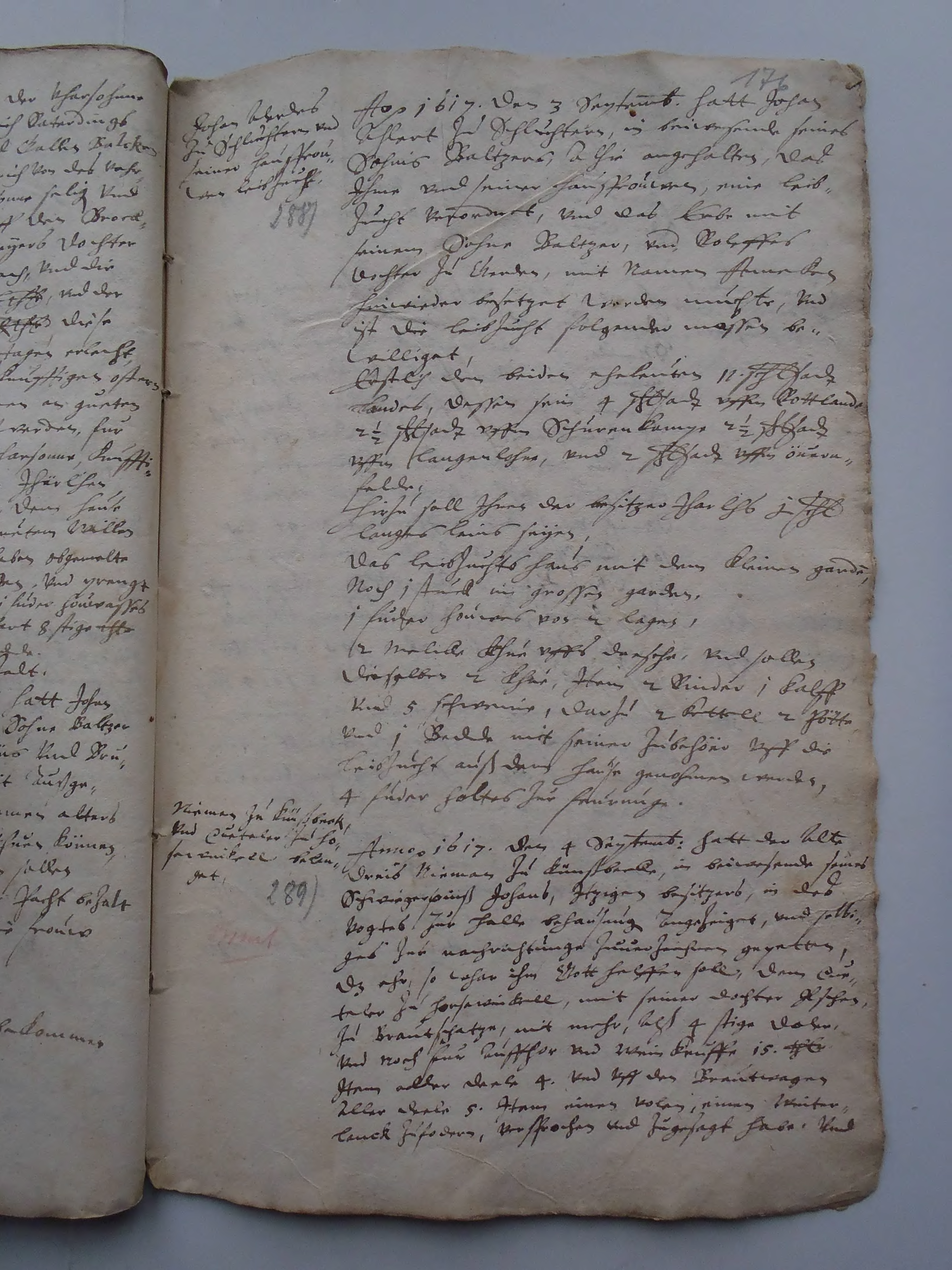 Anno p 1617 den 3 Septemb. hatt Johan Ahlert zu Schluchtern, in Beiwesende seines Sohnis Baltzens, alhie angehalten, das ihme und seiner Hausfrouwen, eine Leibzucht verordnet, und das Erbe mit seinem Sohne Baltzer, und Roleffes Dochter zu Gerden, mit Namen Anneken hinwieder besetzet werden muchte, und ist die Leibzucht folgender massen bewilliget.