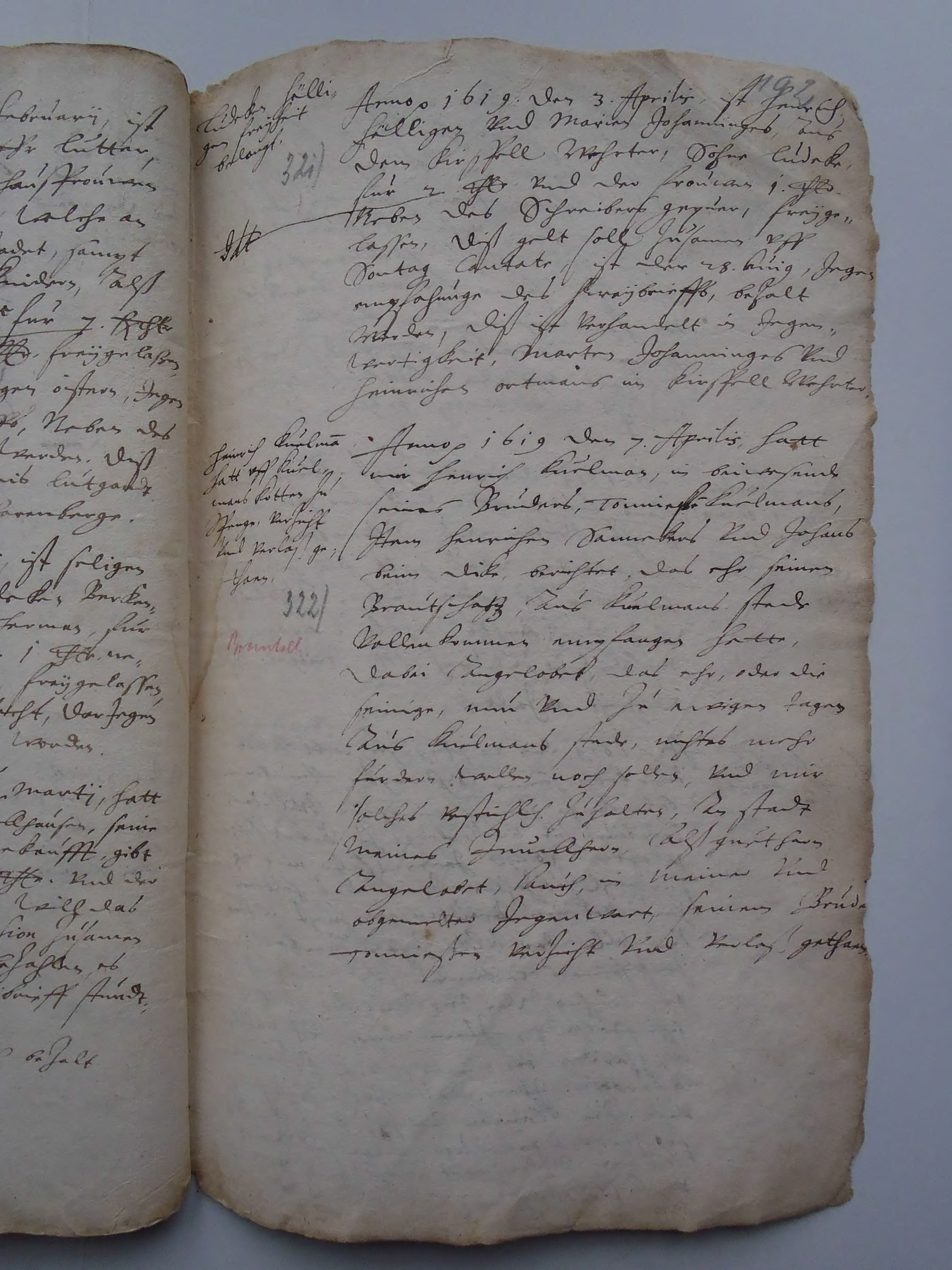 Anno p 1619 den 3. Aprilis, ist Henrich Helligen und Marien Johanninges, aus dem Kirspell Wehrter, Sohne Ludeke, fur 2 Thaler und der Frouwen 1 Thaler neben des Schreibers Gepuer, freygelassen, diß Gelt soll zusamen uff Sontag Cantate, ist der 28. huig, jegen Empfahunge des Freybrieffs, bezalt werden, diß ist verhandelt in Jegenwertigkeit, Marten Johanninges und Henrichen Ortmans im Kirspell Wehrter.