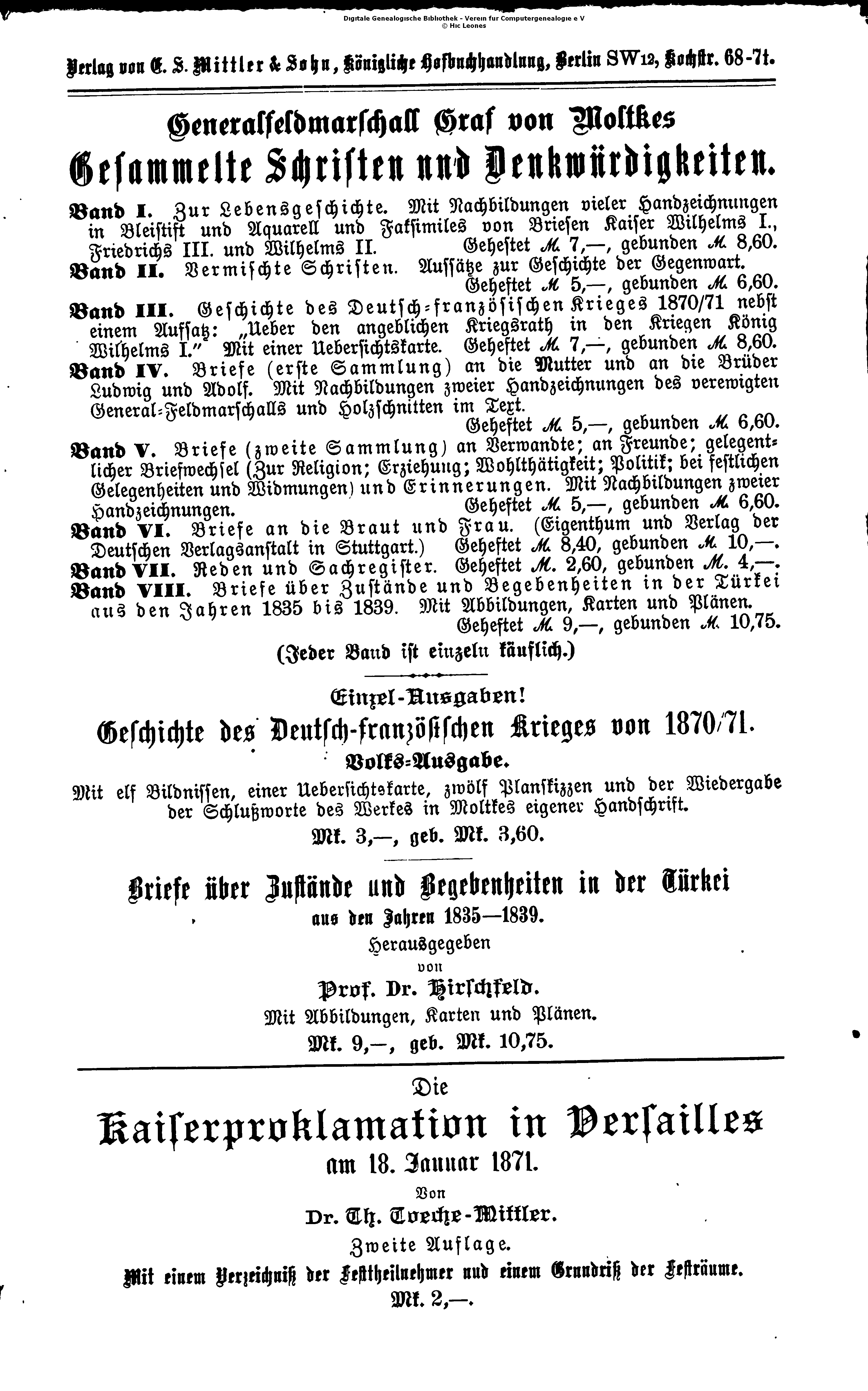 Verlag von E.S. Mittler & Sohn, Königliche Buchhandlung, Berlin SW 12, Kochstr. 68-71.