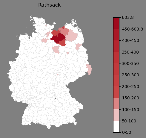 Absolute Verteilung des Namens Rathsack (1890)Direkt zur Karte Absolute Verteilung des Namens "Rathsack" um 1890 im damaligen Deutschen Reich Sie können die Karte innerhalb des Fensters zoomen und verschieben. |