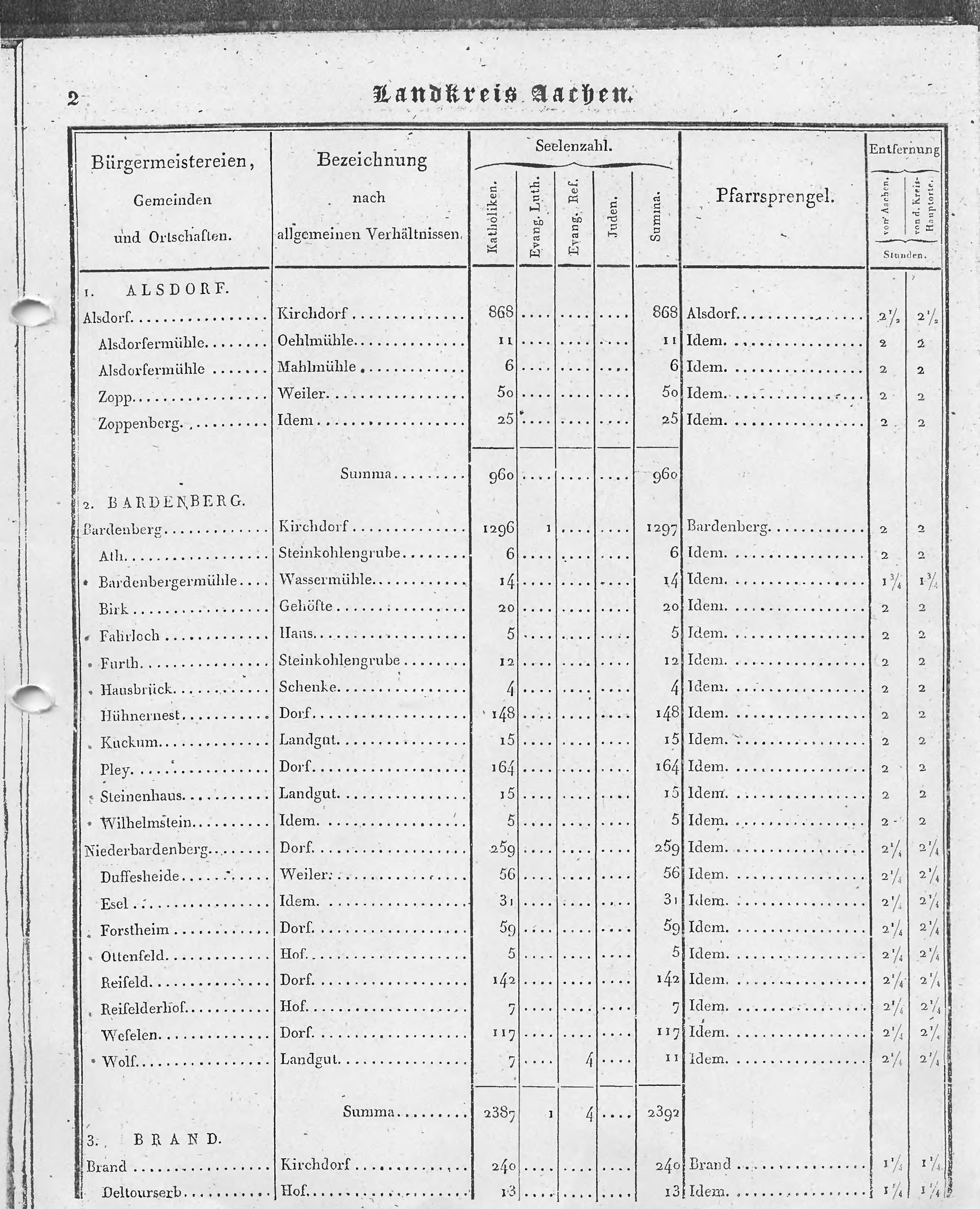 | Regierungsbezirk Aachen/Statistik 1827 | |