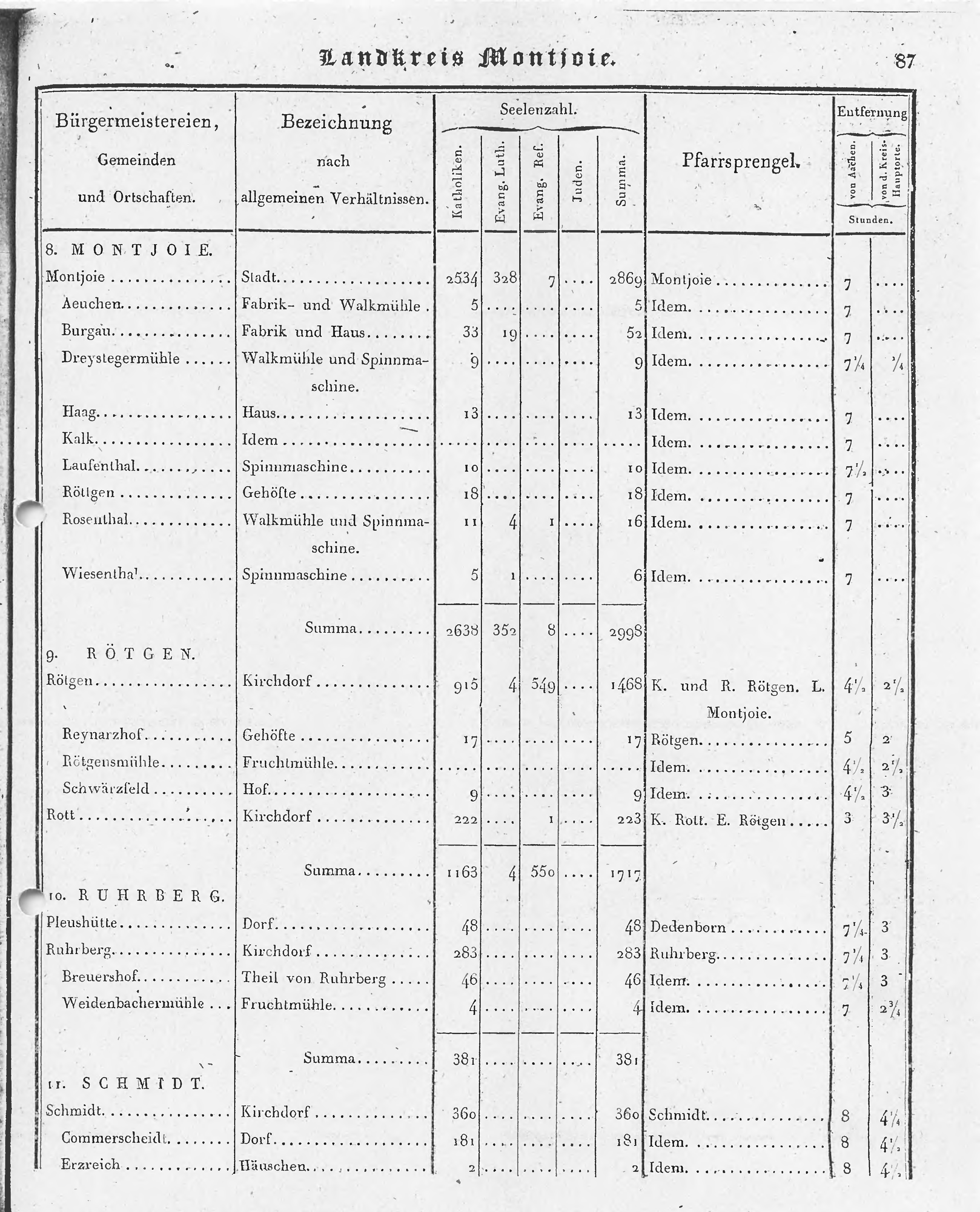 | Regierungsbezirk Aachen/Statistik 1827 | |