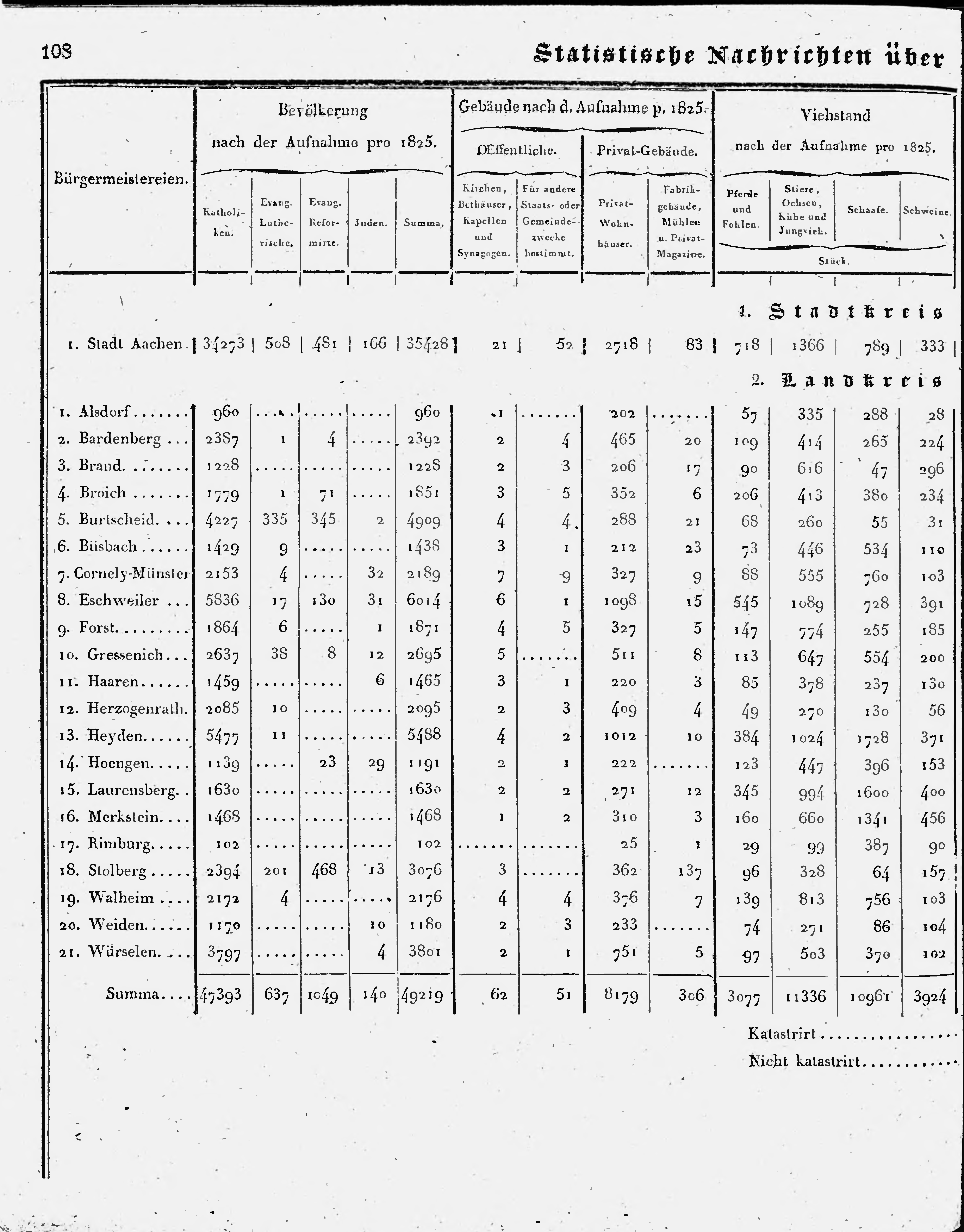 | Regierungsbezirk Aachen/Statistik 1827 | |