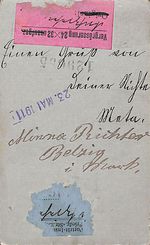 | Foto: | "Einen Gruß von Deiner Nichte Meta / Minna Richter, Belzig i(n der) Mark"; Stempel: 23. Mai 1911