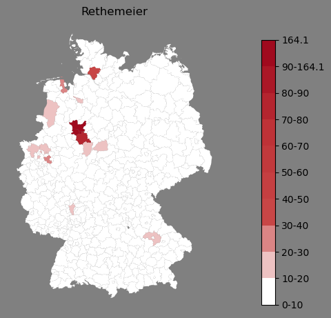 Absolute Verteilung des Namens Rethemeier (1890)Direkt zur Karte Absolute Verteilung des Namens "Rethemeier" um 1890 im damaligen Deutschen Reich Sie können die Karte innerhalb des Fensters zoomen und verschieben. |