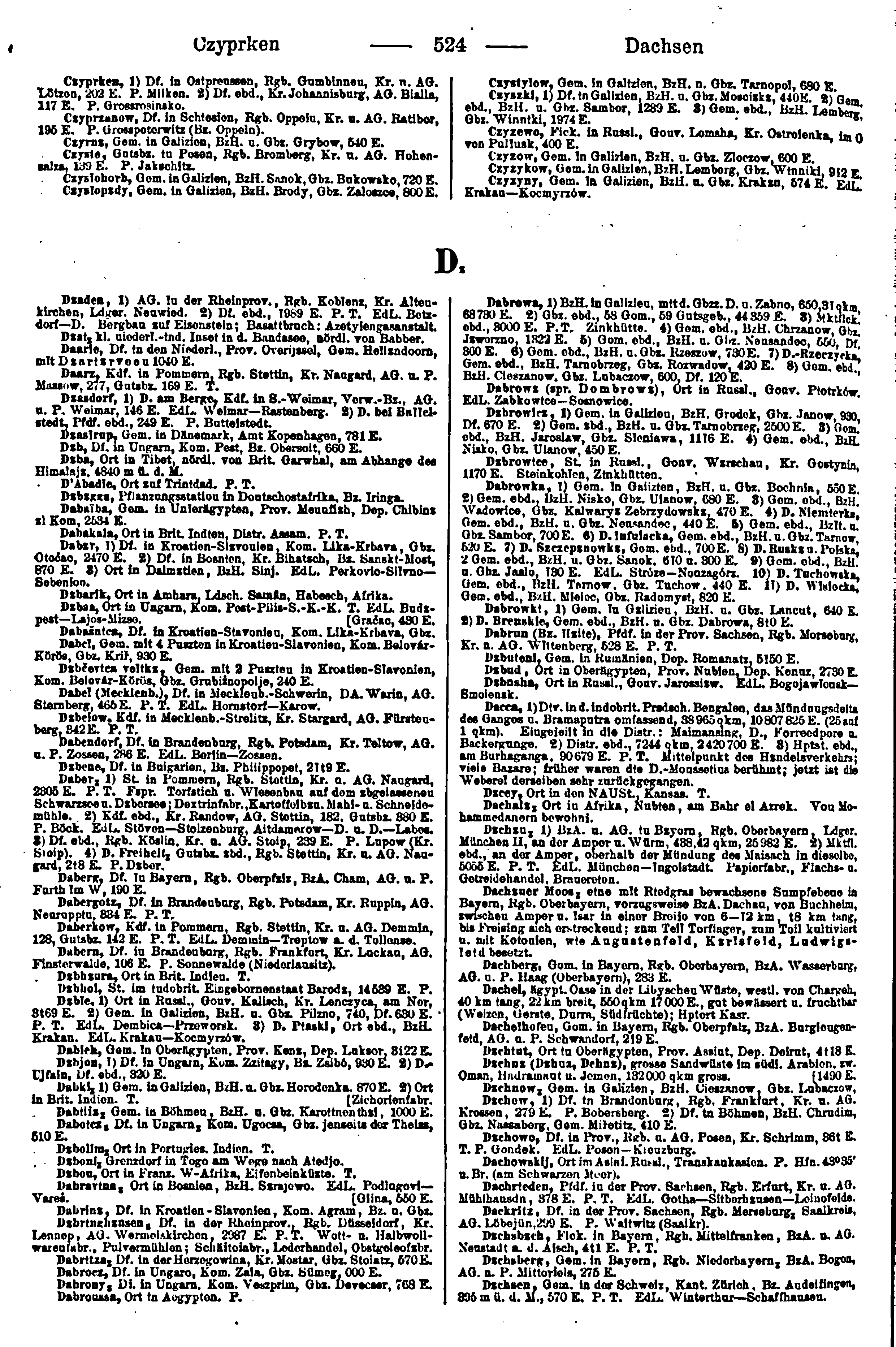 < Ritters geographisch-statistisches Lexikon • 1910 • AK(Weitergeleitet von Ritters geographisch-statistisches Lexikon/1910/LZ/D)