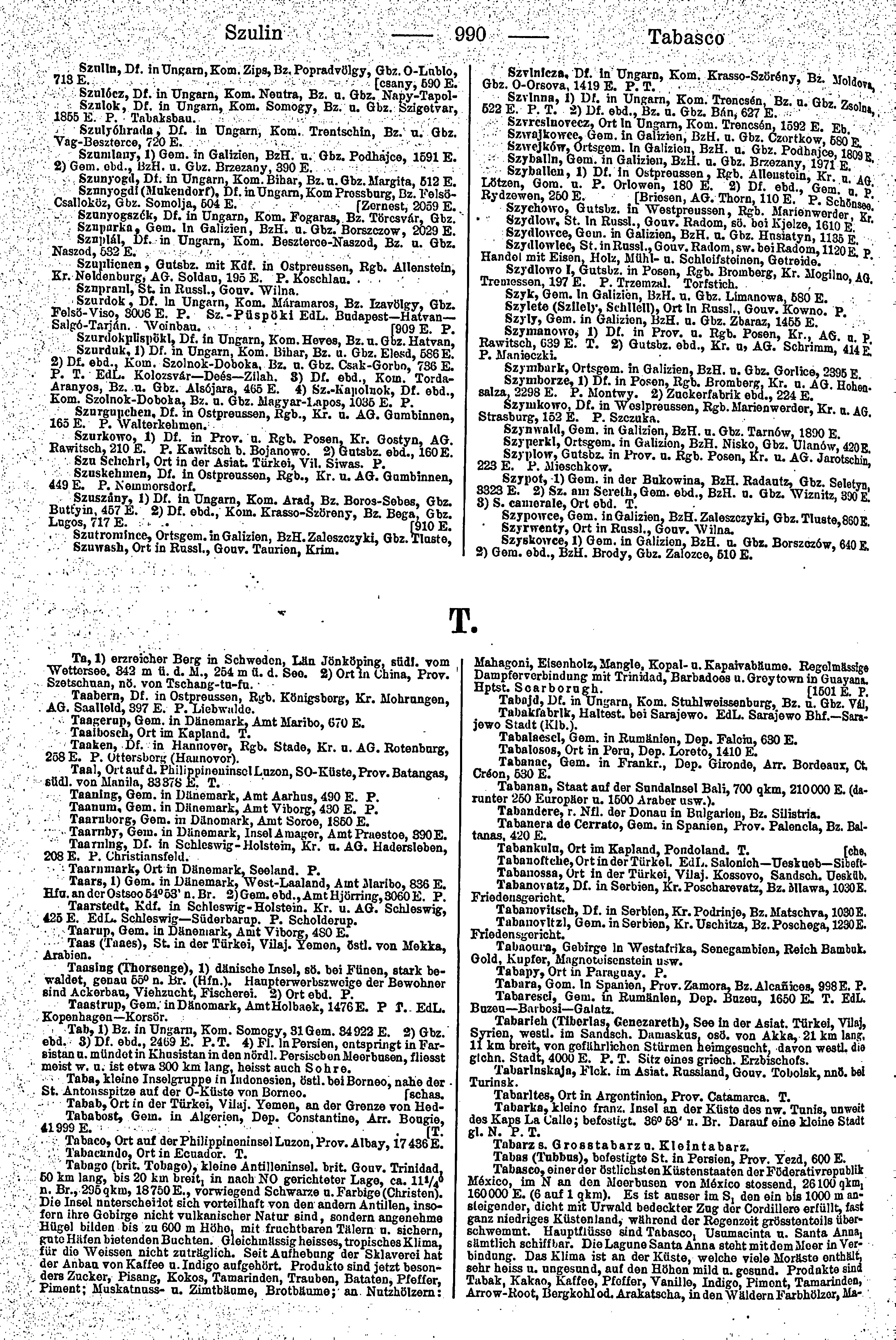 < Ritters geographisch-statistisches Lexikon • 1910 • LZ(Weitergeleitet von Ritters geographisch-statistisches Lexikon/1910/LZ/T)