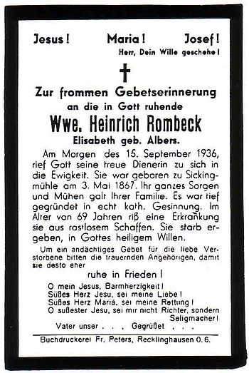 - Familie: Heinrich Rombeck - Elisabeth Albers.