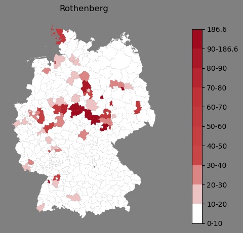 Absolute Verteilung des Namens Rothenberg (1890)Direkt zur Karte Absolute Verteilung des Namens "Rothenberg" um 1890 im damaligen Deutschen Reich Sie können die Karte innerhalb des Fensters zoomen und verschieben. |