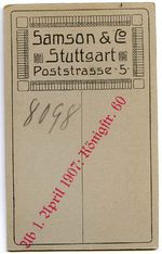 | Foto: | Stempel: "Ab 1. April 1907: Königstr. 60"