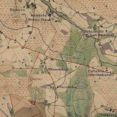 Der Fluss verläuft bei Tarwieden (Kr.Heydekrug).