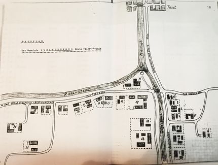 - Alter Siedlungsort, 14 km nordwerstlich von Tilsit, 1871 Ortsteil von Campinischken[4]