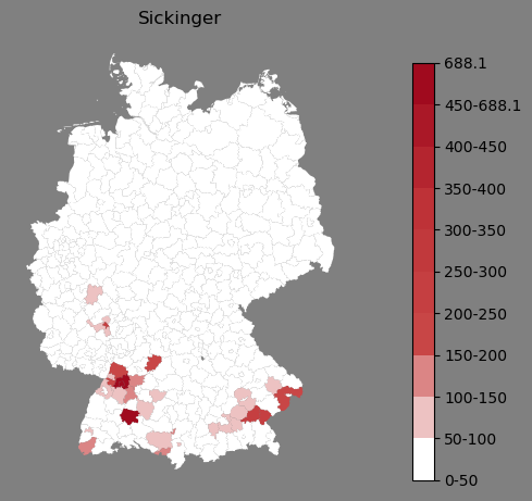 Absolute Verteilung des Namens Sickinger (1890)Direkt zur Karte Absolute Verteilung des Namens "Sickinger" um 1890 im damaligen Deutschen Reich Sie können die Karte innerhalb des Fensters zoomen und verschieben. |