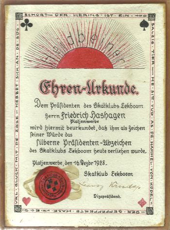 Am 29. Oktober 1908 wurde im Lokal "Bruns" in der Schulstrasse eine Karten-Club mit dem Namen Eeckboom gegründet.