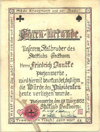 Es ist nicht bekannt, ob der heute bestehende (2014) Kartenclub, der jede Woche Dienstag im Platjenwerber Dorfgemeinschaftshaus spielt, aus diesem Skatclub hervorgegangen ist.