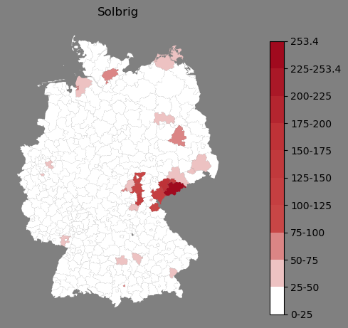 Absolute Verteilung des Namens Solbrig (1890)Direkt zur Karte Absolute Verteilung des Namens "Solbrig" um 1890 im damaligen Deutschen Reich Sie können die Karte innerhalb des Fensters zoomen und verschieben. |