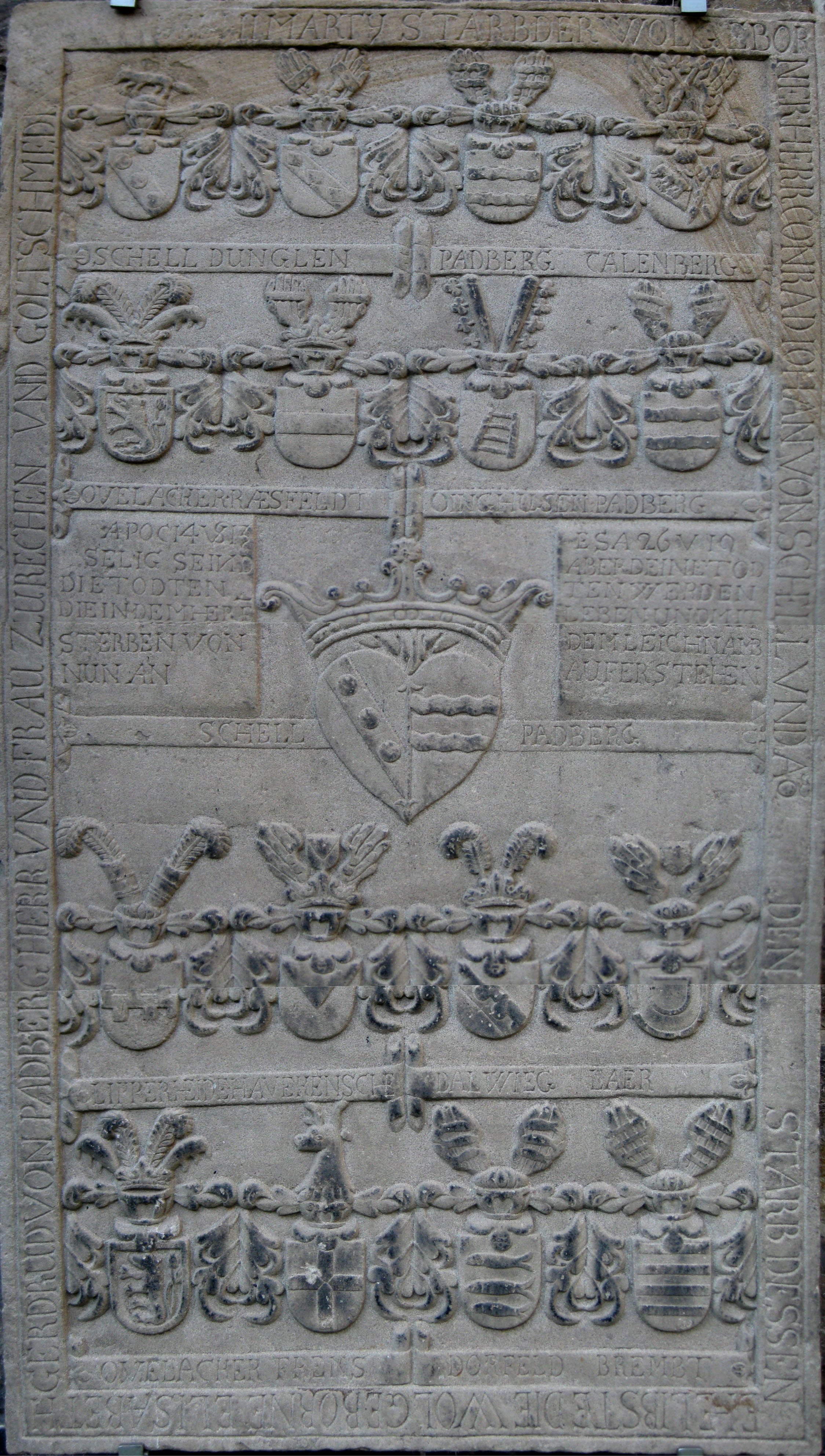 | 17:48, 15. Okt. 2011 | Grabstein-Rechen-3.JPG (Datei) | 1,6 MB | {{Information |Beschreibung = Grabstein der eheleute CONRAD IOHAN VON SCHELL und ELISABETH /GERDRUD VON PADBERG 1695 |Quelle = Eigenes Bild |Urheber = Andreas Janik - Herne |Datum = 15.10.2011 |Scans = |Genehmigung = |Andere_Versionen = |Anmerkungen = | 1 | |