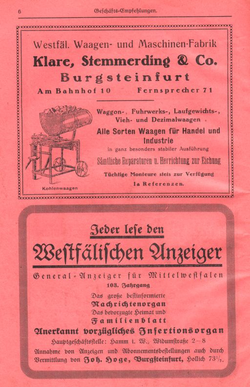 | 22:13, 9. Apr. 2006 | Steinfurt4.jpg (Datei) | 90 KB | * Beispiel Geschäftsempfehlung Adreßbuch des Kreises Steinfurt 1925/1926 * Scan vom 09.04.2006 / Michael Klävers * Lizenz: GNU FDL | 1 | |