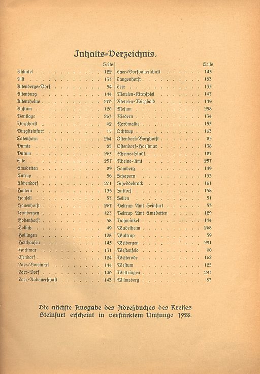| 13:32, 9. Apr. 2006 | Steinfurt.jpg (Datei) | 53 KB | {{Bildbeschreibung|Adreßbuch des Kreises Steinfurt 1925/1926|Scan vom 09.04.2006 |Lizenz: GNU FDL}} | 1 | |